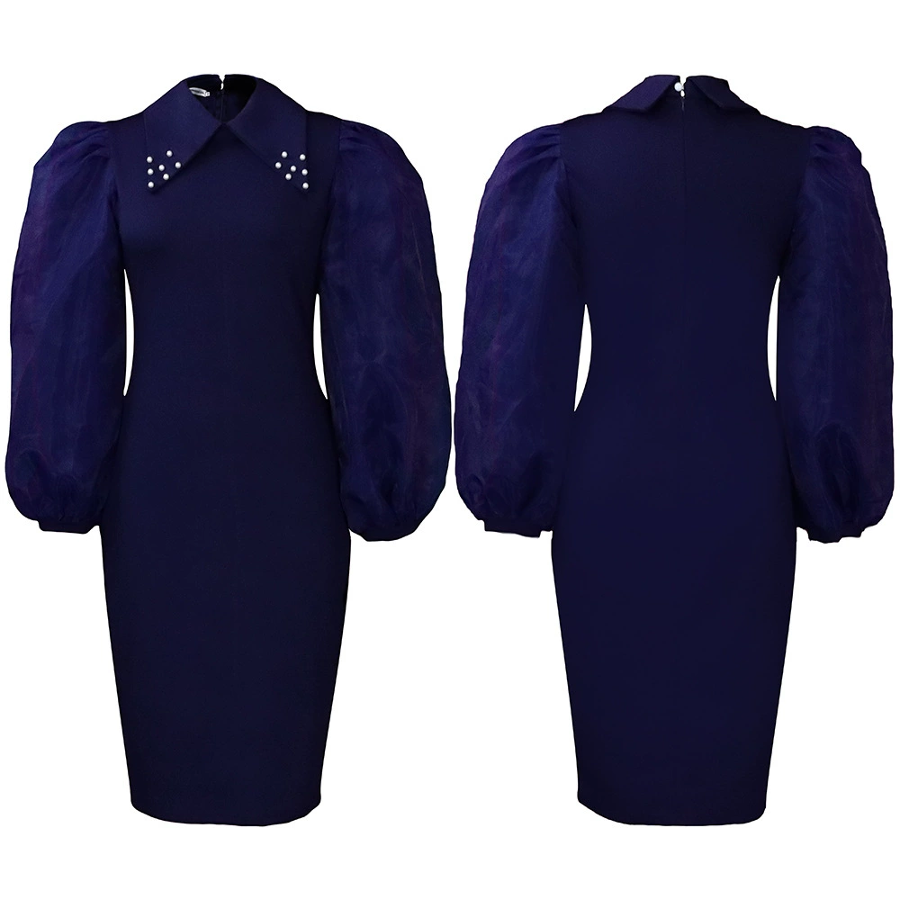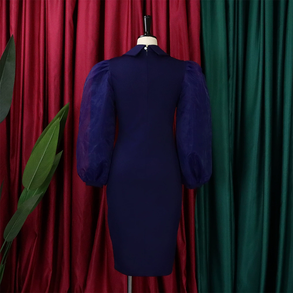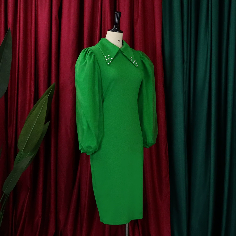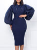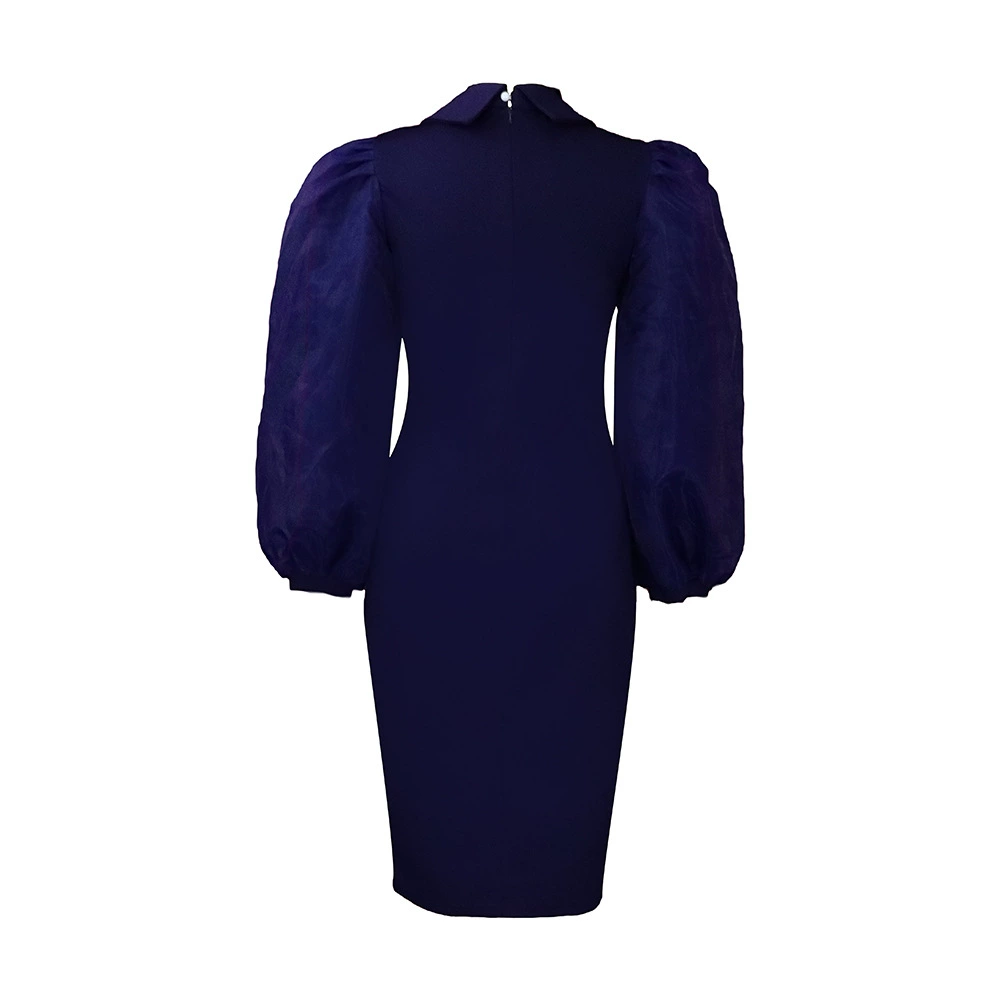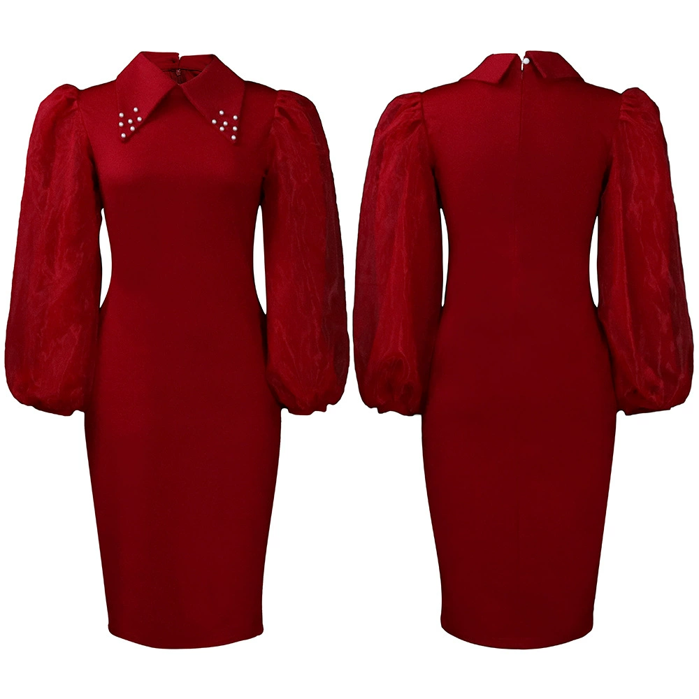 Fleepmart Women Long Lantern Sleeves Dress Turn Down Collar Autumn Fashion Bodycon Sheath Female Robes Elegant Office Ladies Date Out New