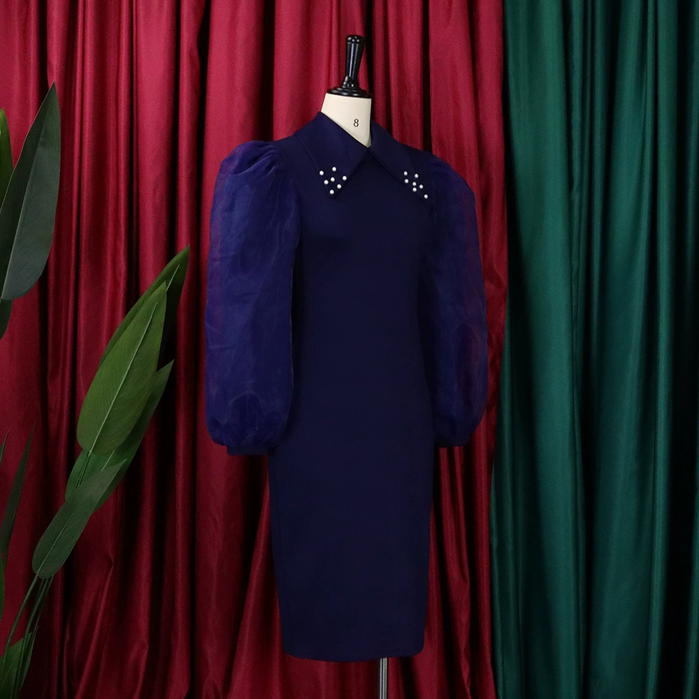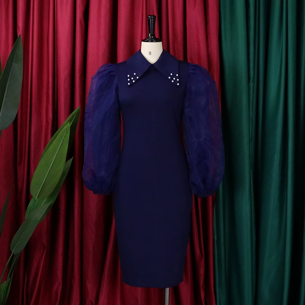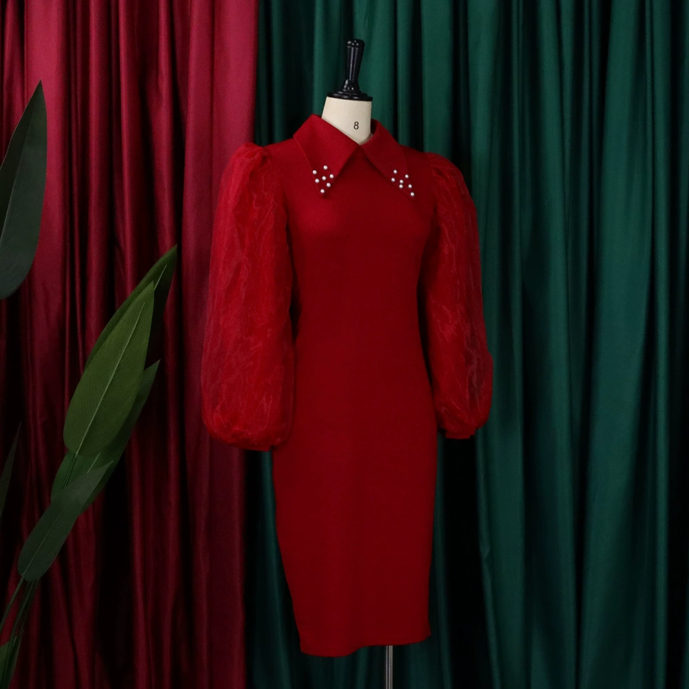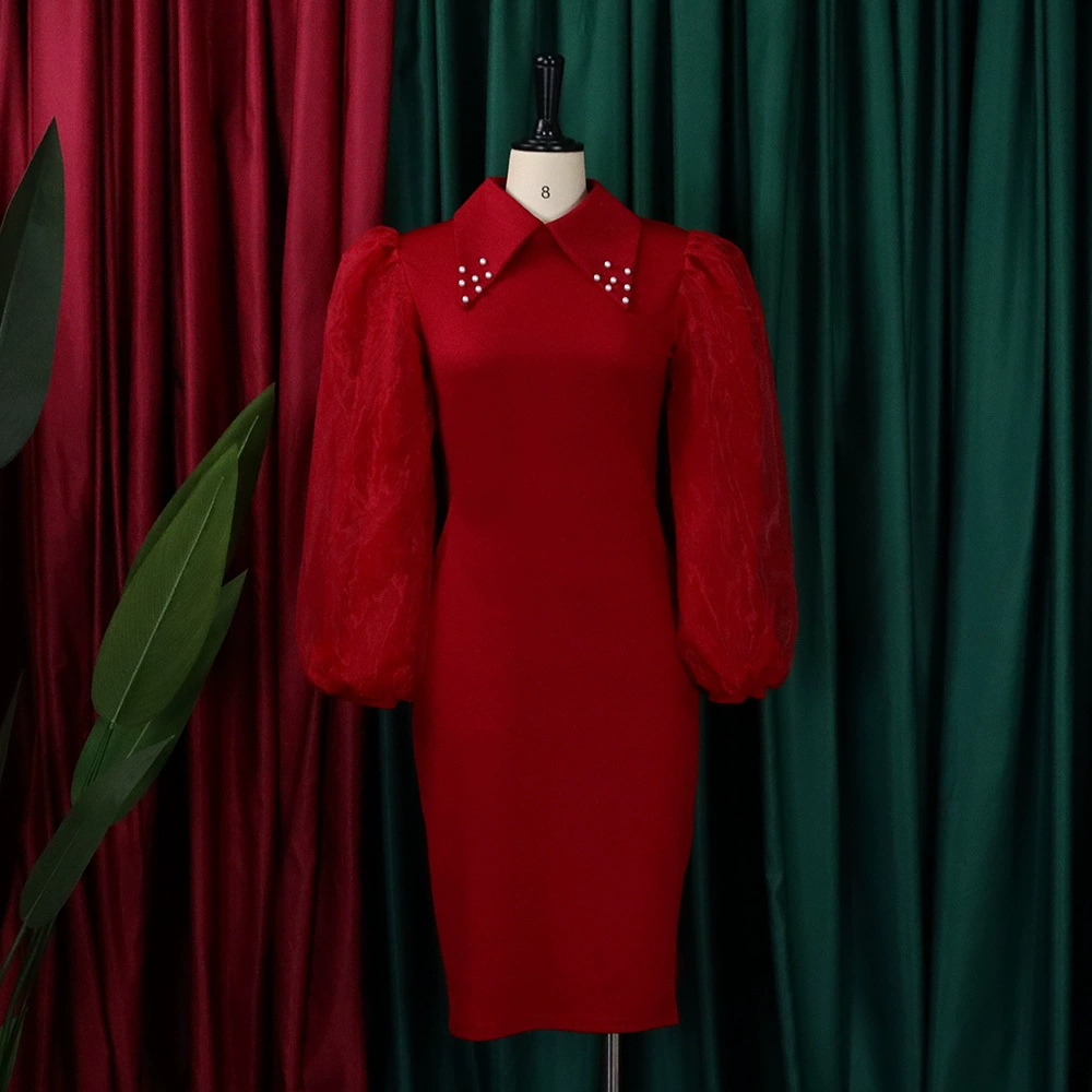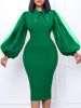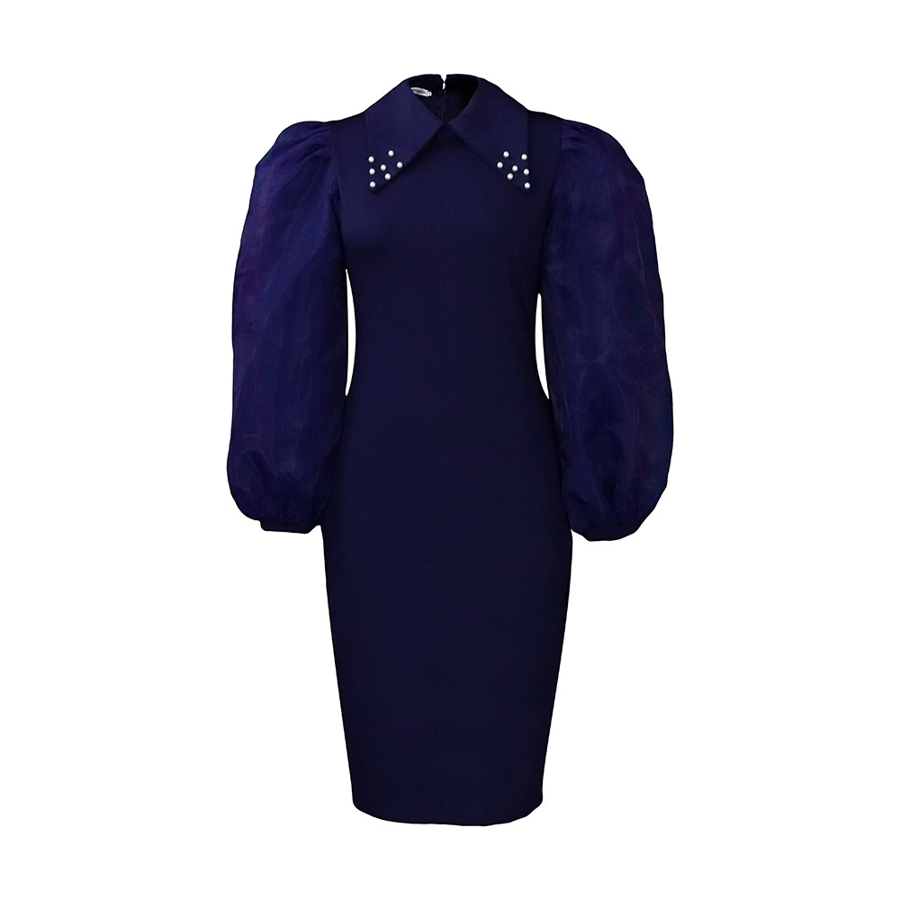 Fleepmart Women Long Lantern Sleeves Dress Turn Down Collar Autumn Fashion Bodycon Sheath Female Robes Elegant Office Ladies Date Out New