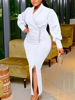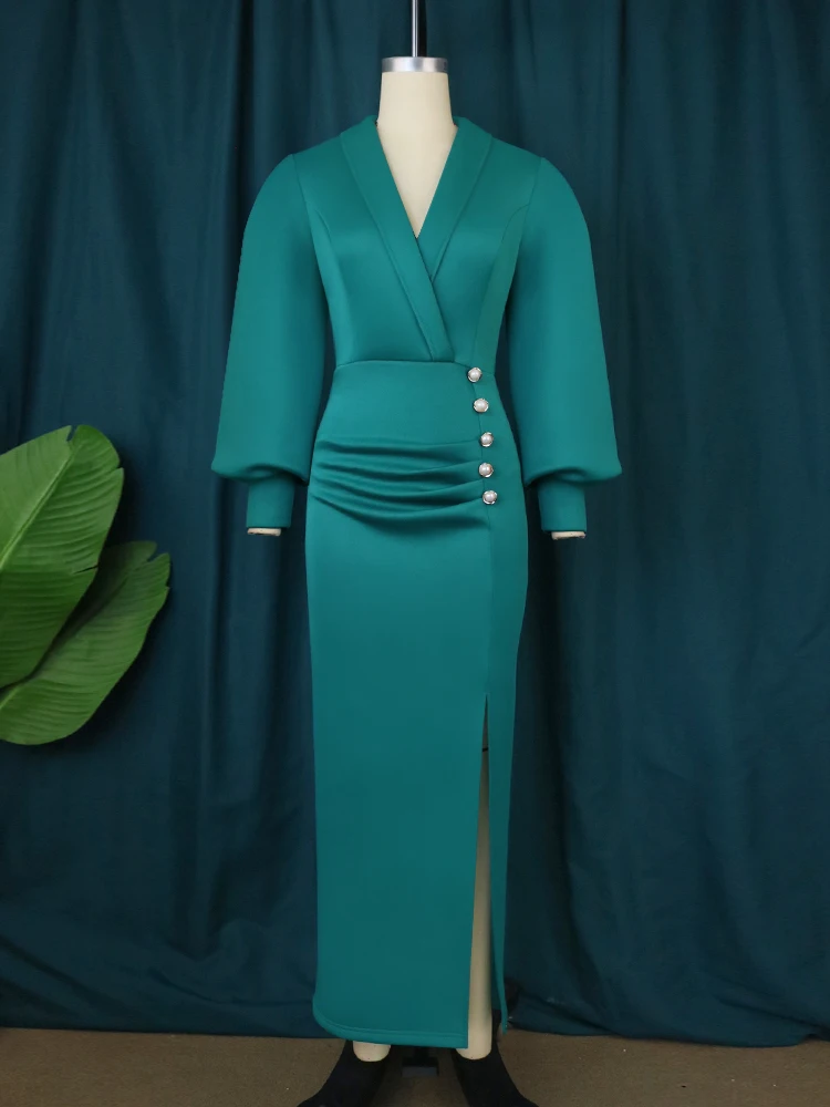 Fleepmart Women Long Sleeves Dresses Slit V Neck Notched Neck Buttons Classy Elegant Female Slim Office Lady Party Club Events Wear