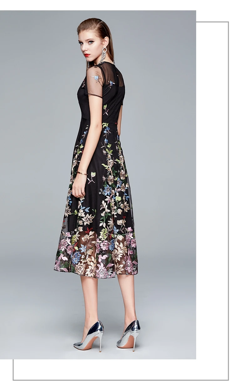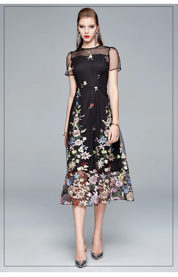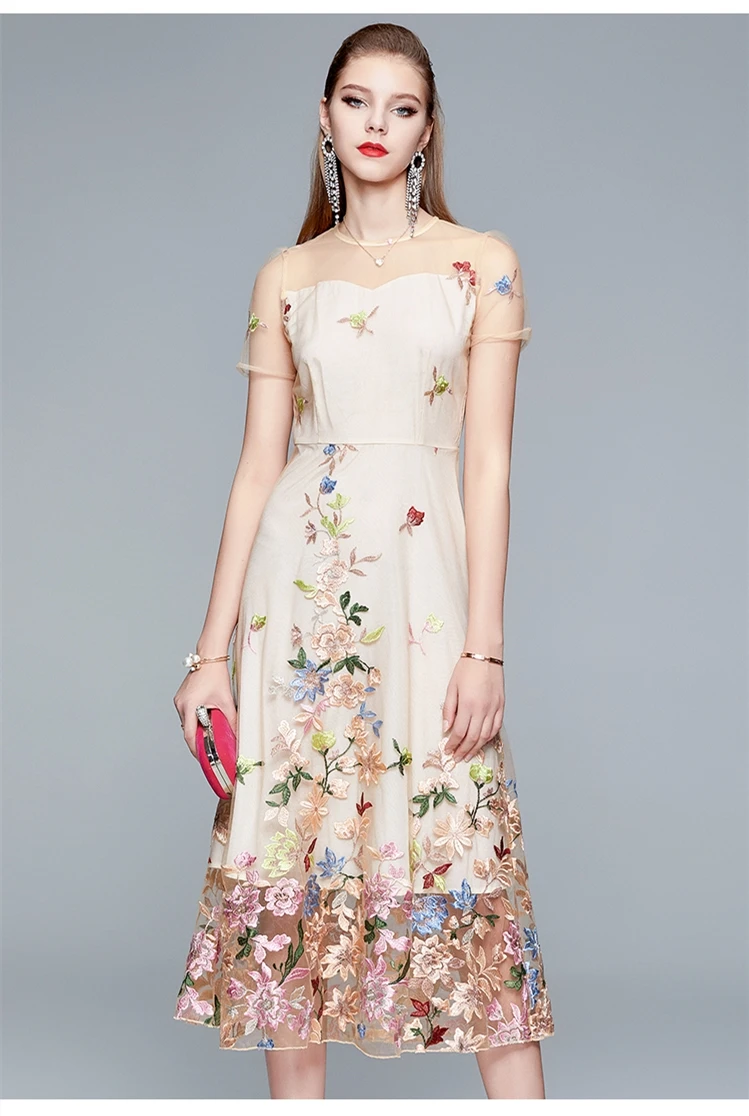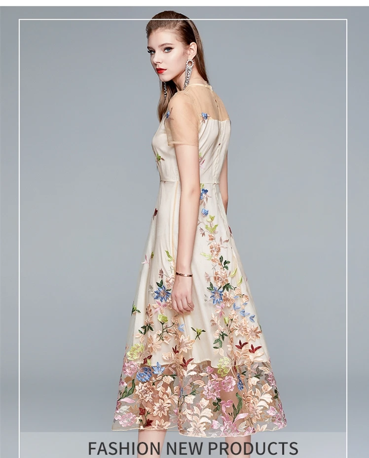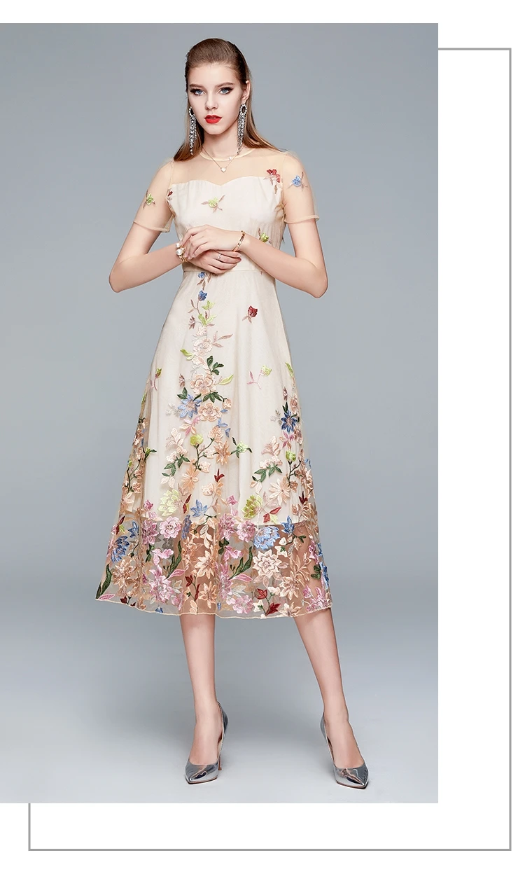 Fleepmart Women Luxury Embroidery Mesh Dress Festa High Quality Long Wedding Party Robe Femme Vintage Designer Floral Vestidos