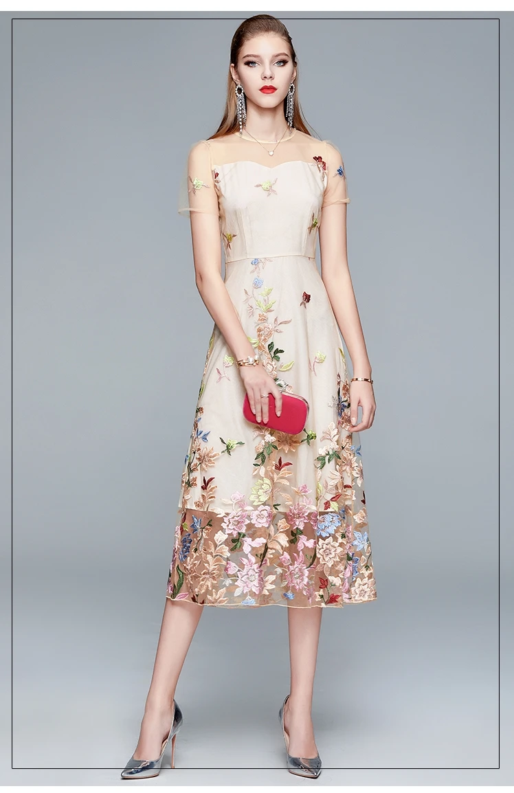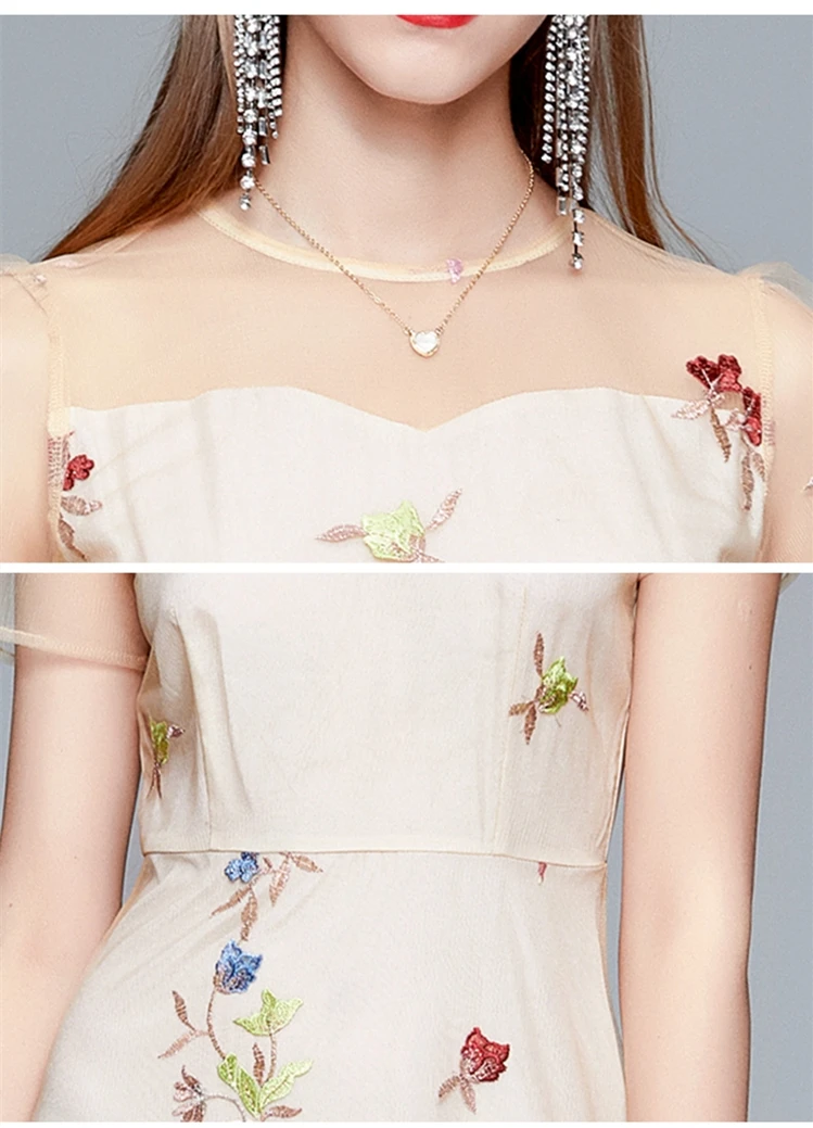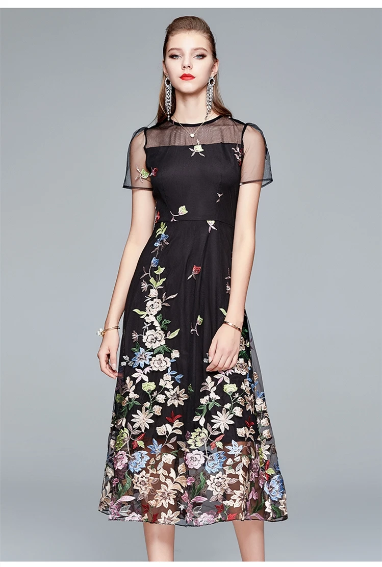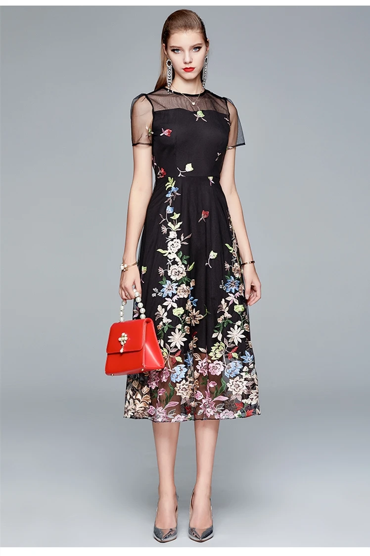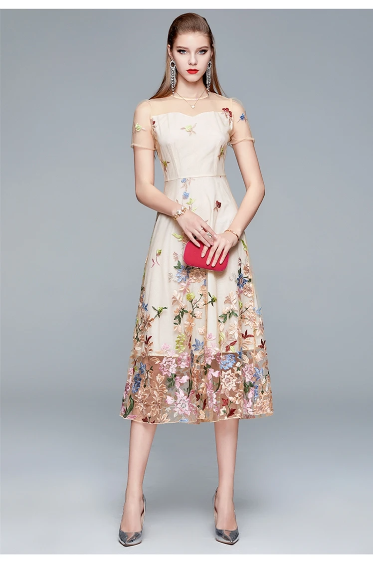 Fleepmart Women Luxury Embroidery Mesh Dress Festa High Quality Long Wedding Party Robe Femme Vintage Designer Floral Vestidos