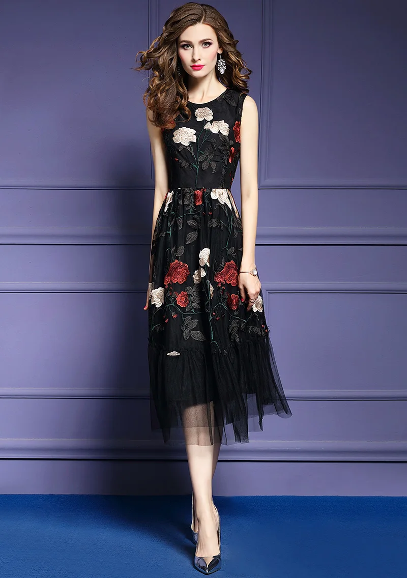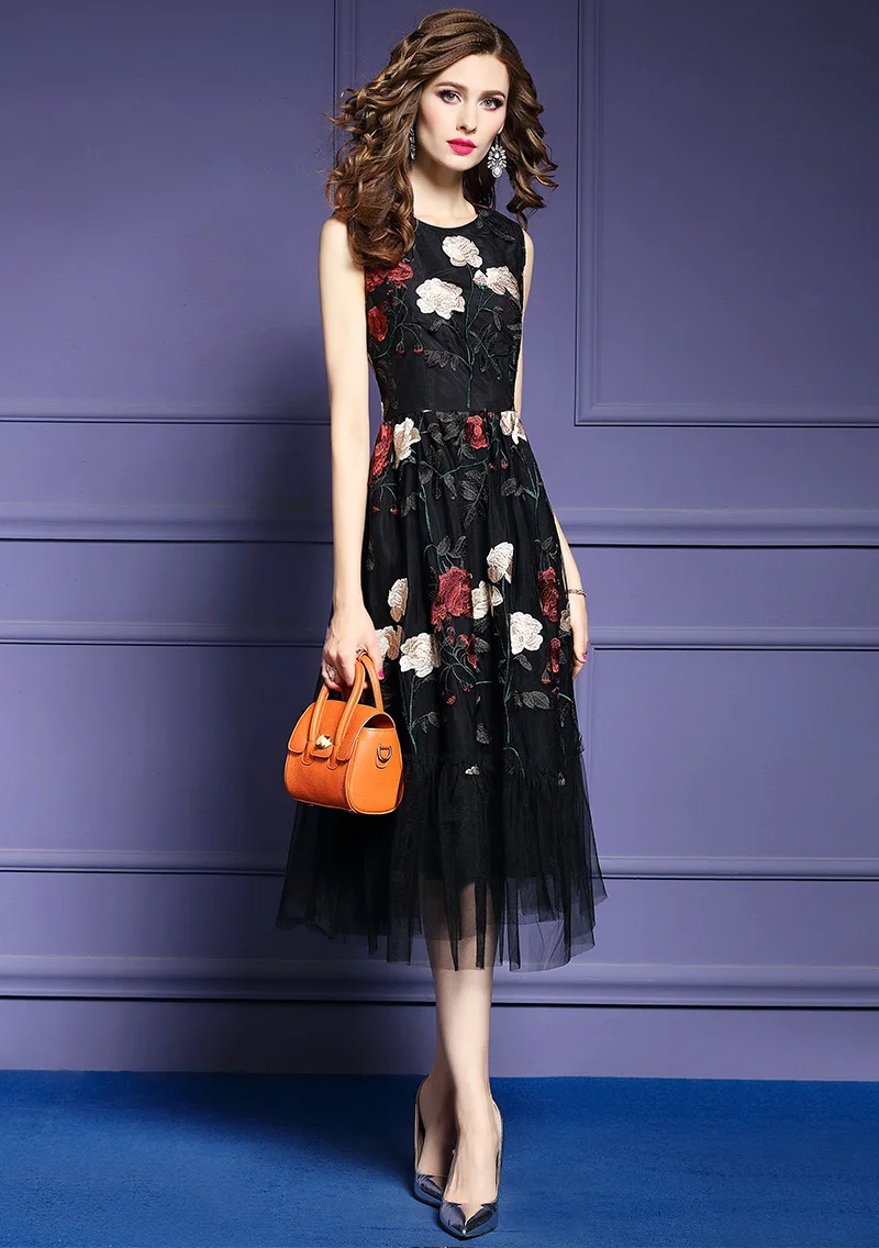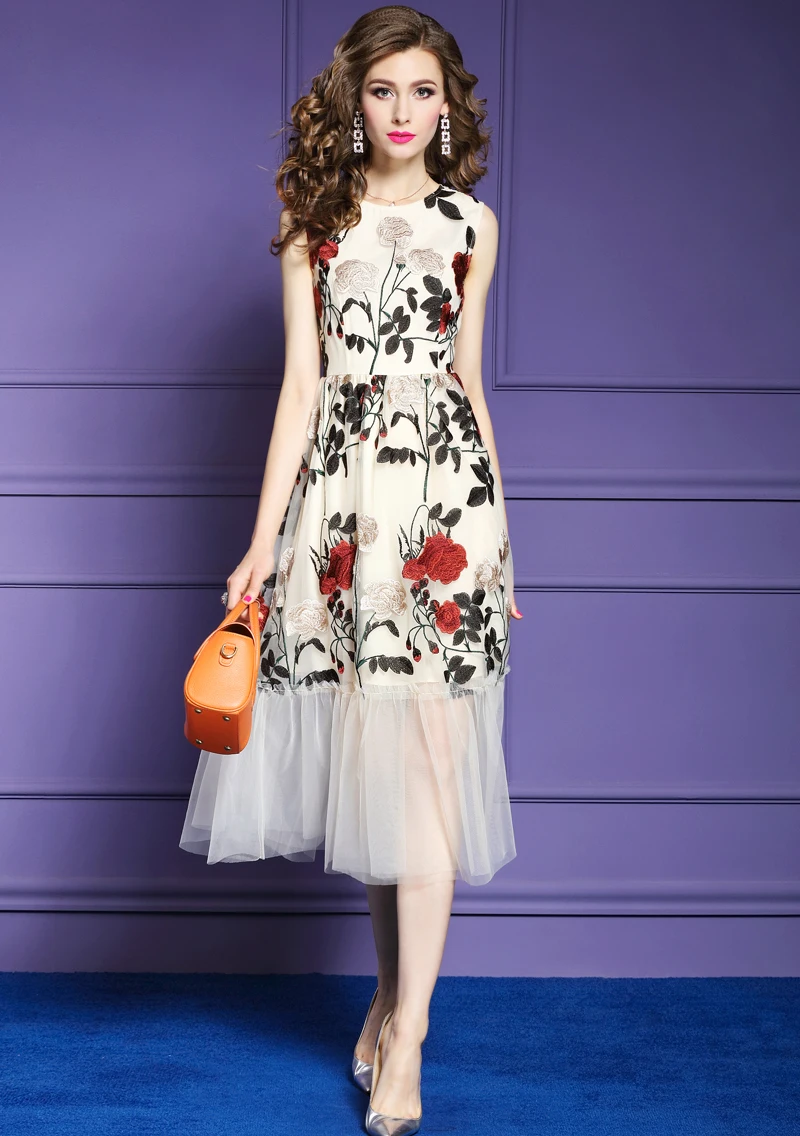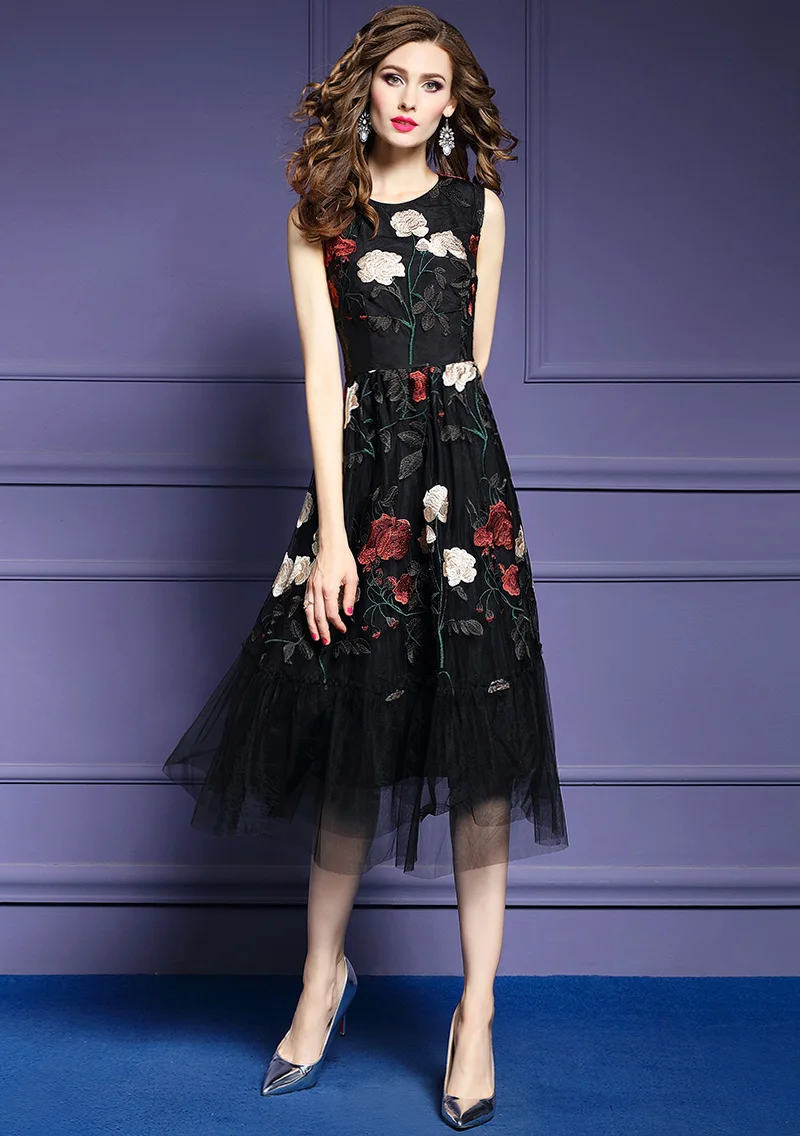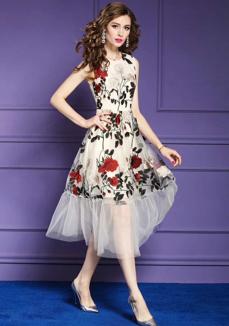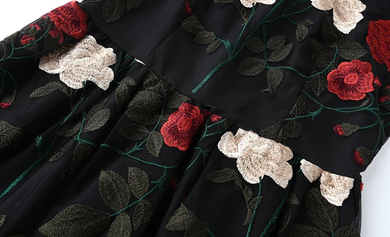 Fleepmart Women Luxury Floral Embroidery Mesh Dress Female High Quality Long Elegant Robe Femme Designer Wedding Party Vestidos