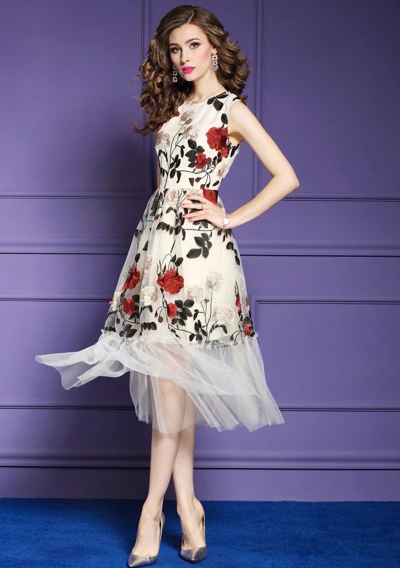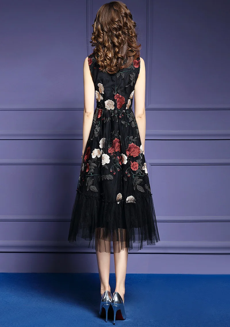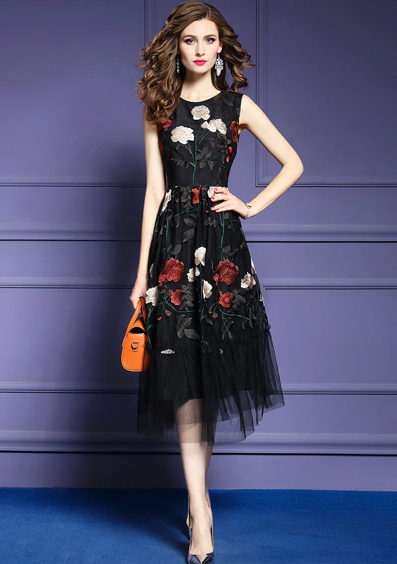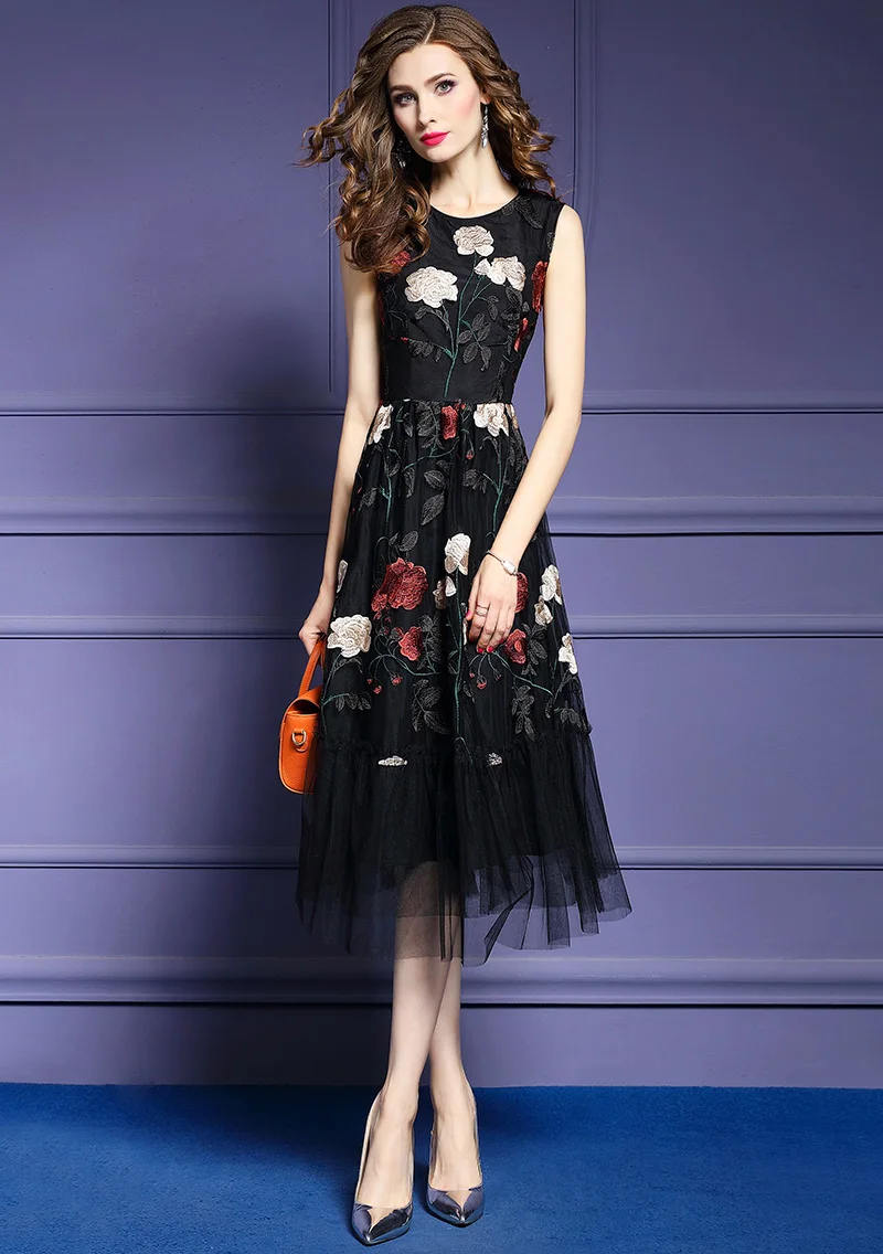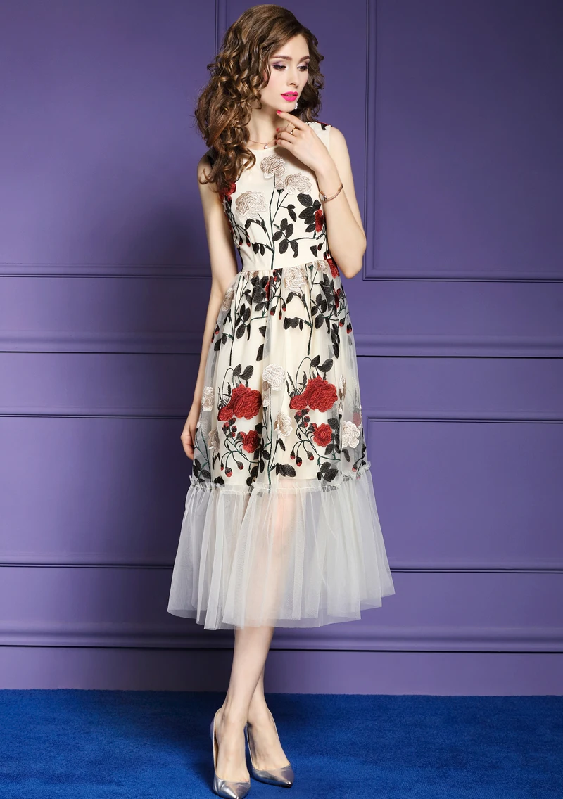 Fleepmart Women Luxury Floral Embroidery Mesh Dress Female High Quality Long Elegant Robe Femme Designer Wedding Party Vestidos