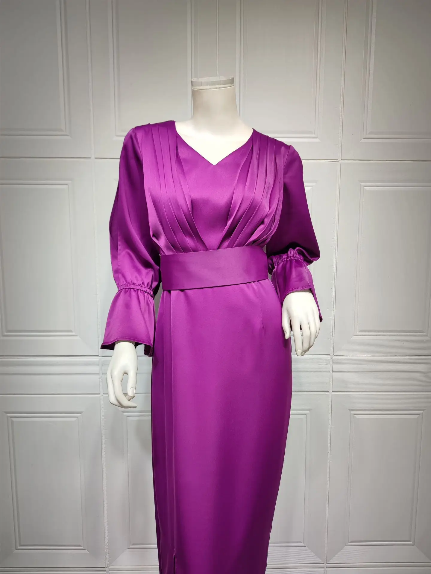 Fleepmart Women Maxi Dress V Neck Long Sleeves Slit High Waist Package Hip Female Occasion Evening Birthday Wedding Guest Prom African New