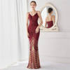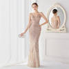 Fleepmart Women Navy Sequin Dress Strap Party Maxi Dress Sexy V Neck Evening Dress Navy Sequin Dress Long Prom Dress