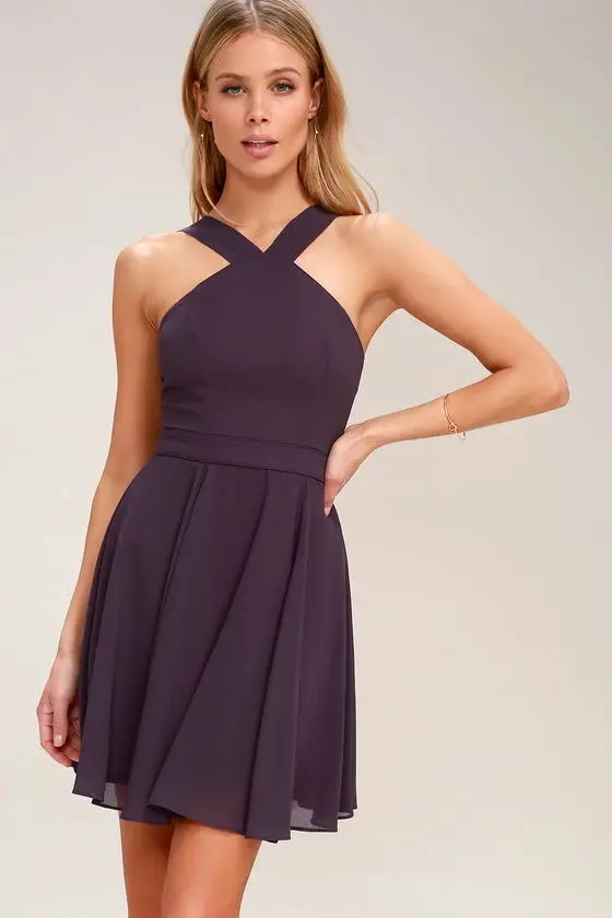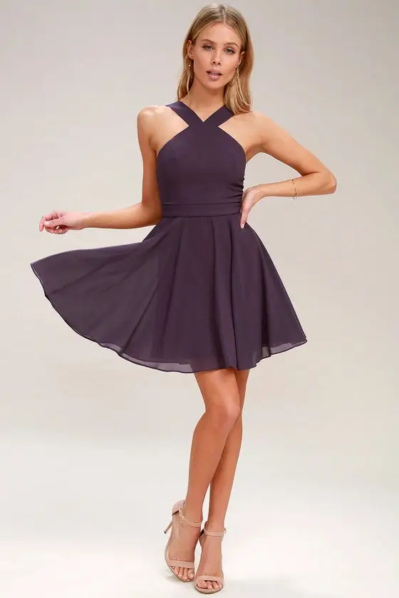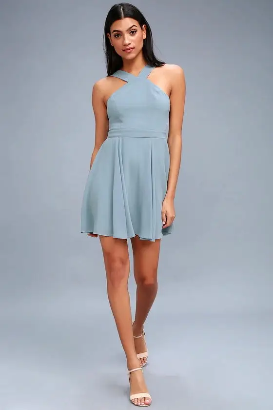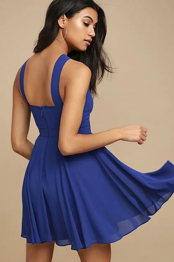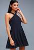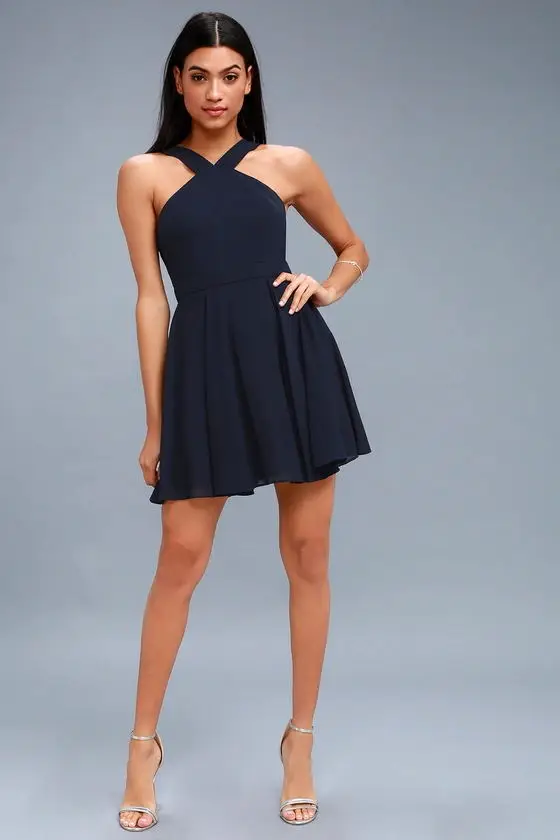 Fleepmart Women Navy Sleeveless Backless Sexy Club Mini Dress 2022 Summer Party Strappy Back Zipper Solid Shift Halter Short Dresses