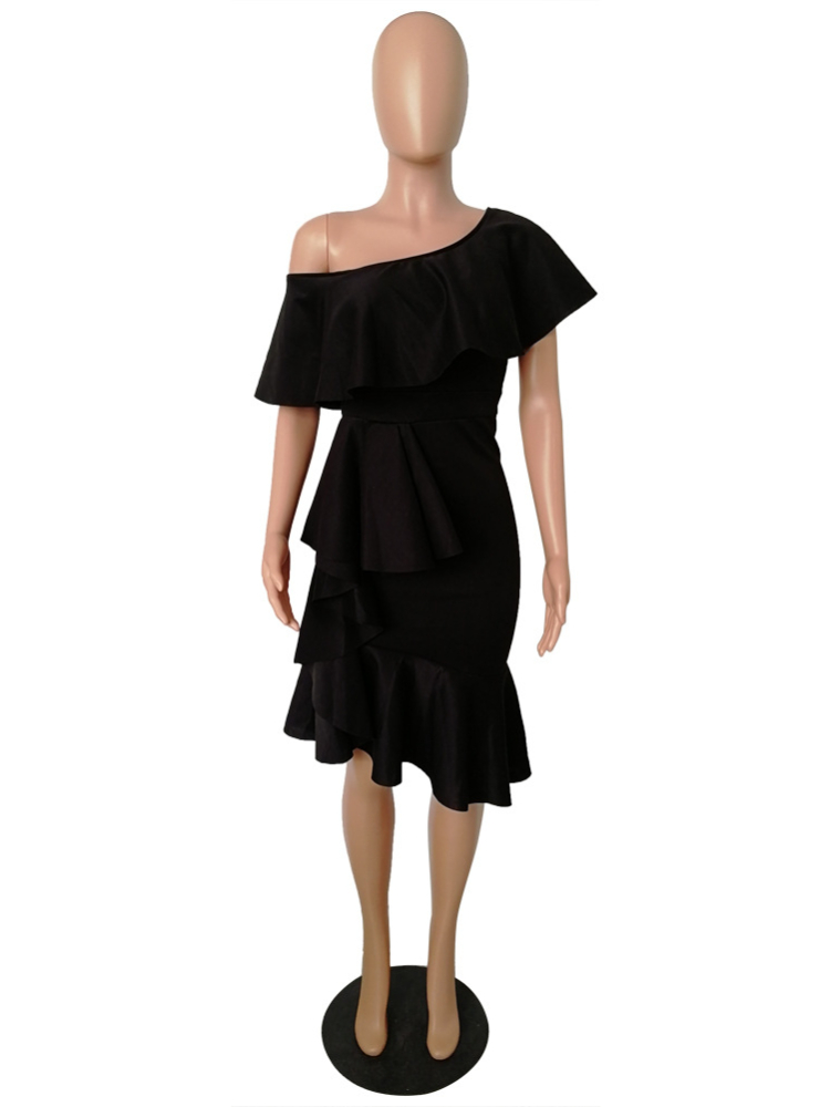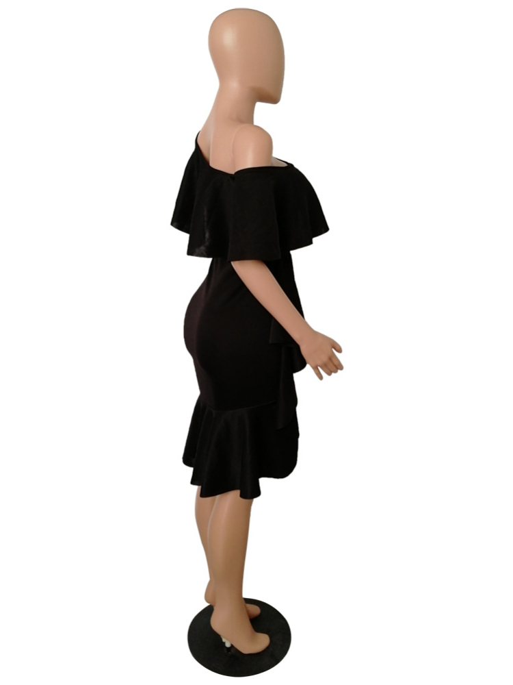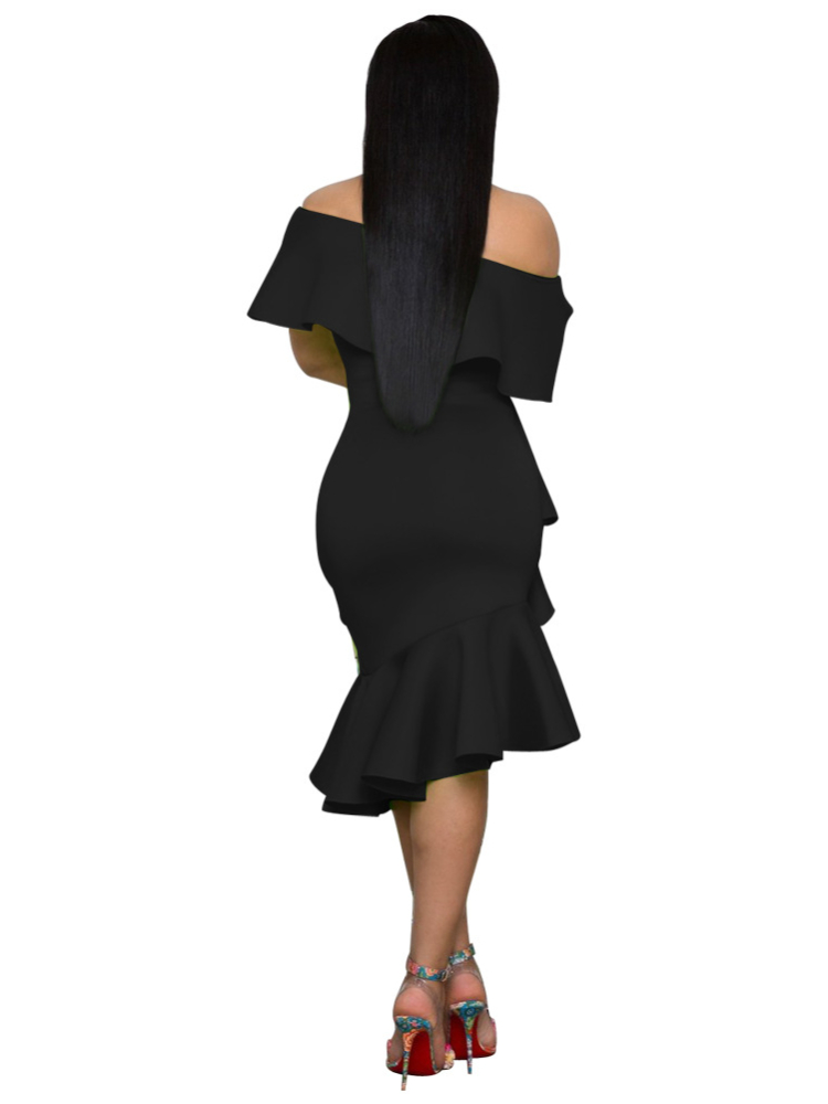 fleepmart Women Off Shoulder Party Dresses Ruffle Sexy Bodycon Sheath Slim Knee Length Date Out Event Celebrate Occassion Vestidos African