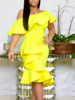 fleepmart Women Off Shoulder Party Dresses Ruffle Sexy Bodycon Sheath Slim Knee Length Date Out Event Celebrate Occassion Vestidos African