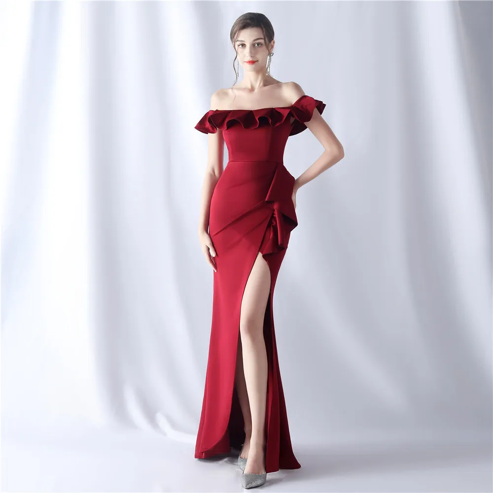 Fleepmart Women One Shoulder Evening Dress Green Ruffles Celebrity Maxi Dress Sexy Slash Neck Long Party Dress There are no reviews yet