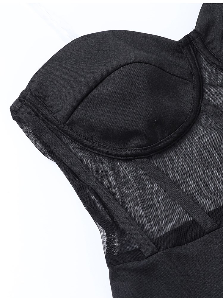 Fleepmart Women Party Corset Tube Midi Dress High Split Sexy See Through Strapless Summer Black Elegant Casual Maxi Dresses
