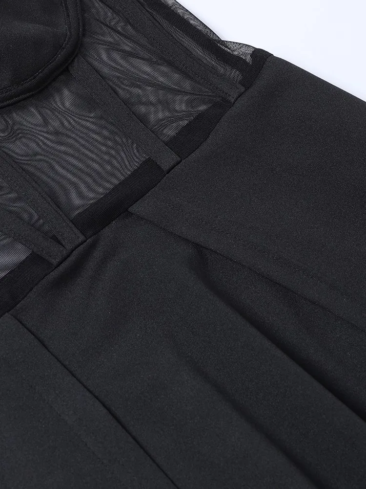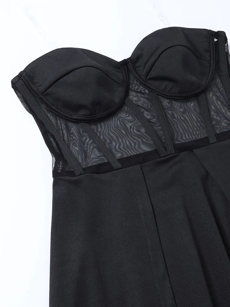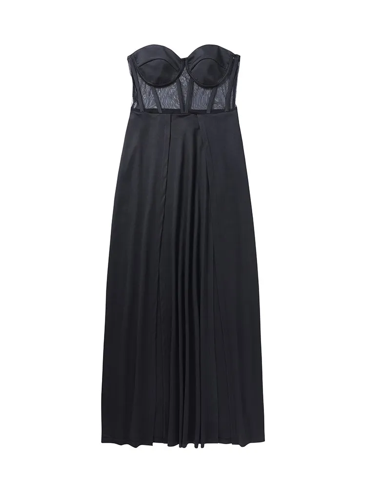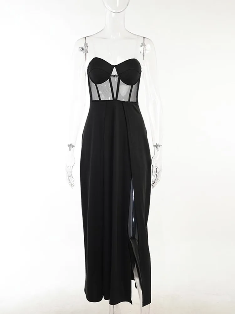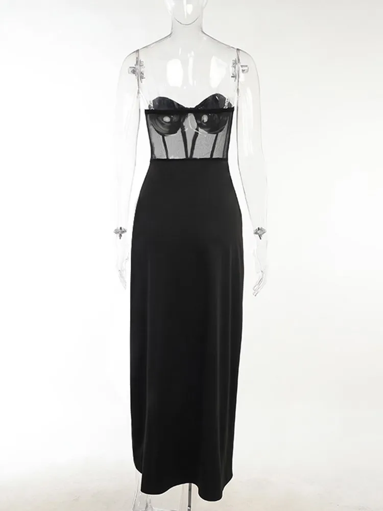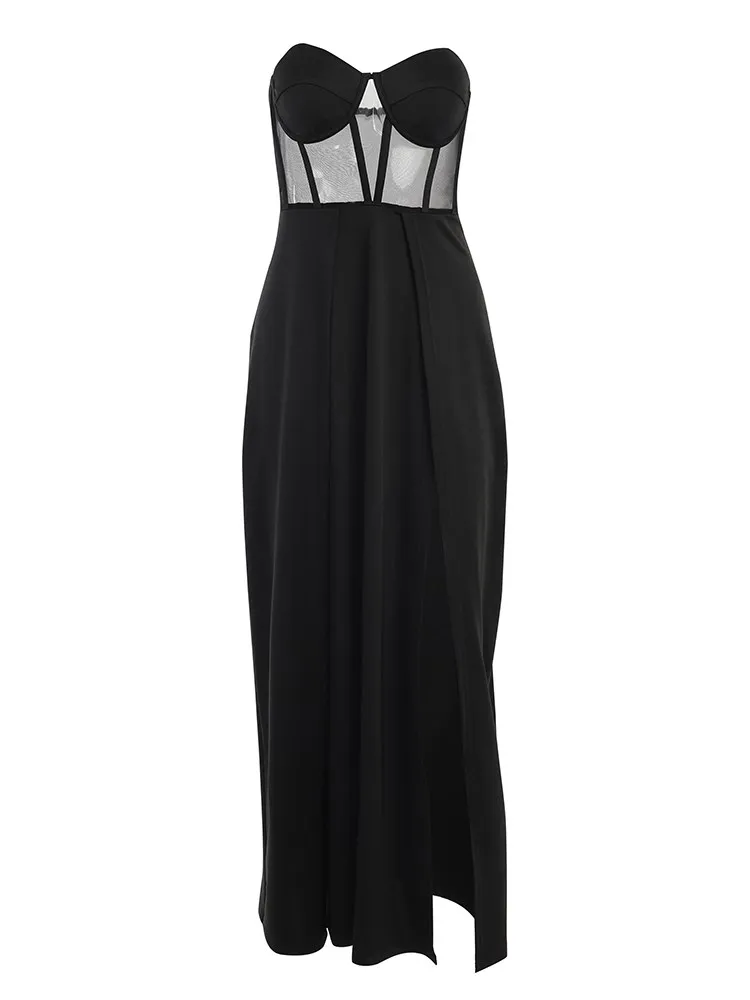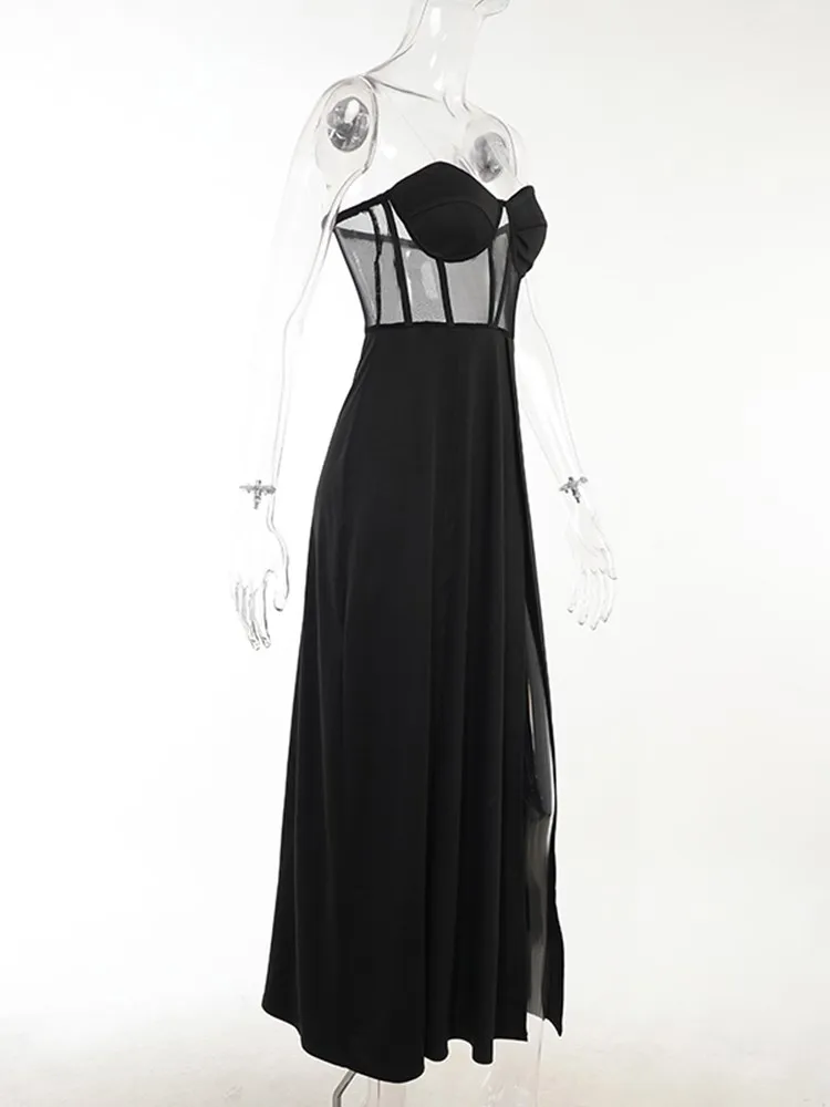 Fleepmart Women Party Corset Tube Midi Dress High Split Sexy See Through Strapless Summer Black Elegant Casual Maxi Dresses