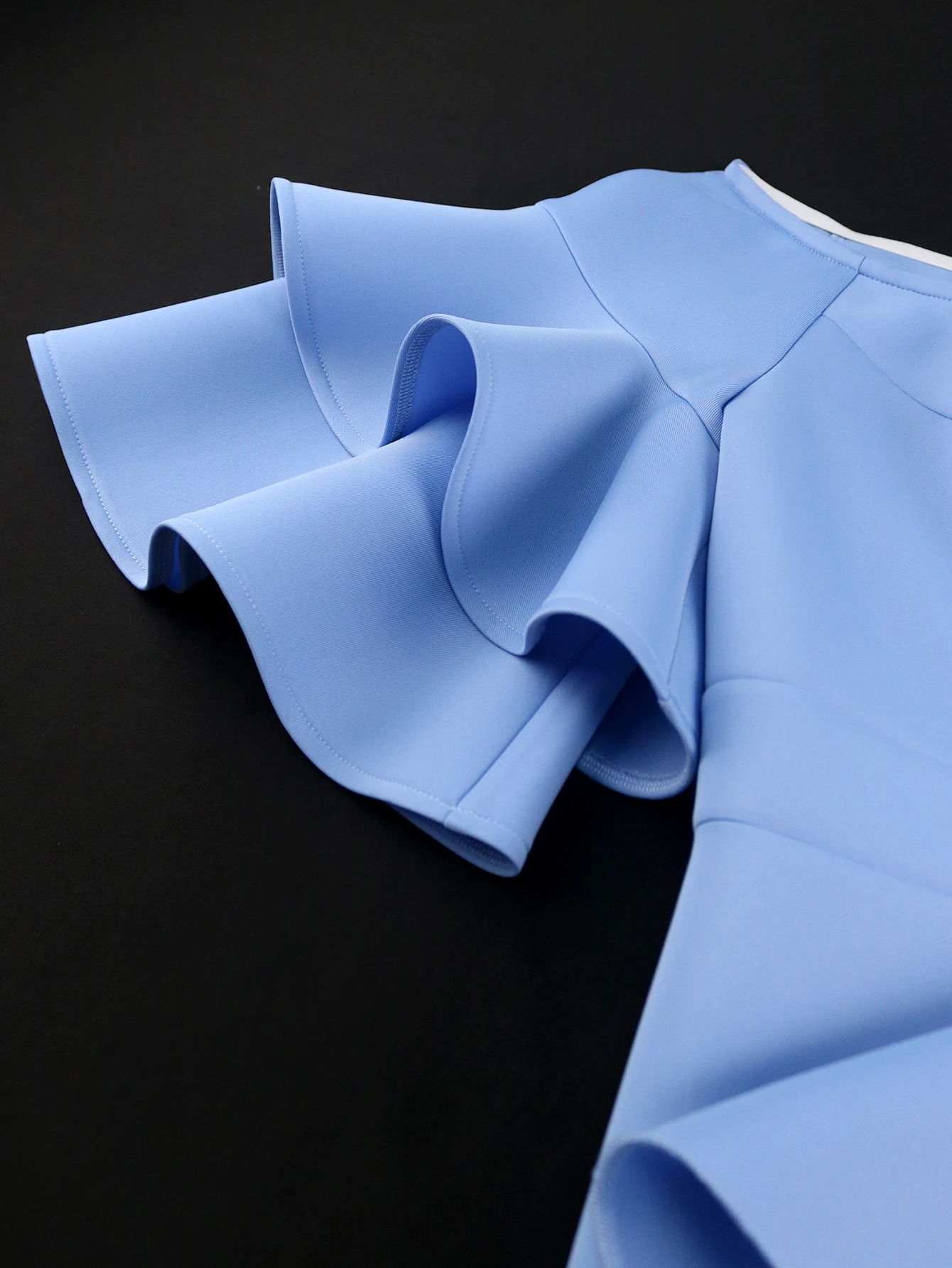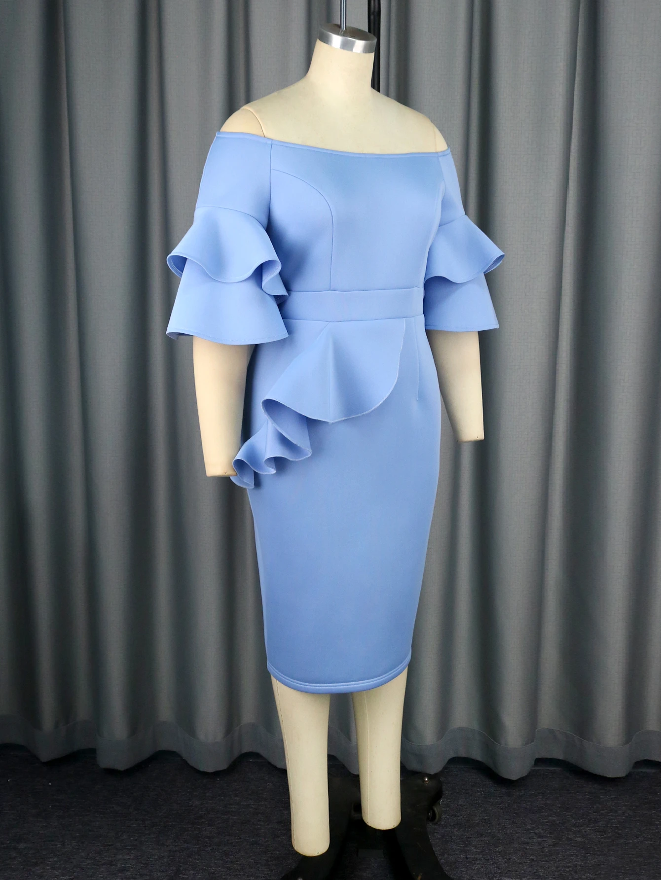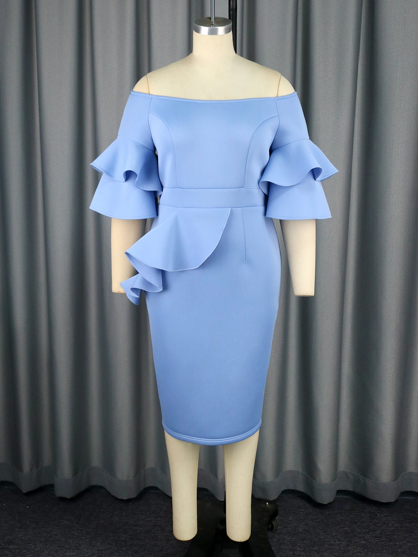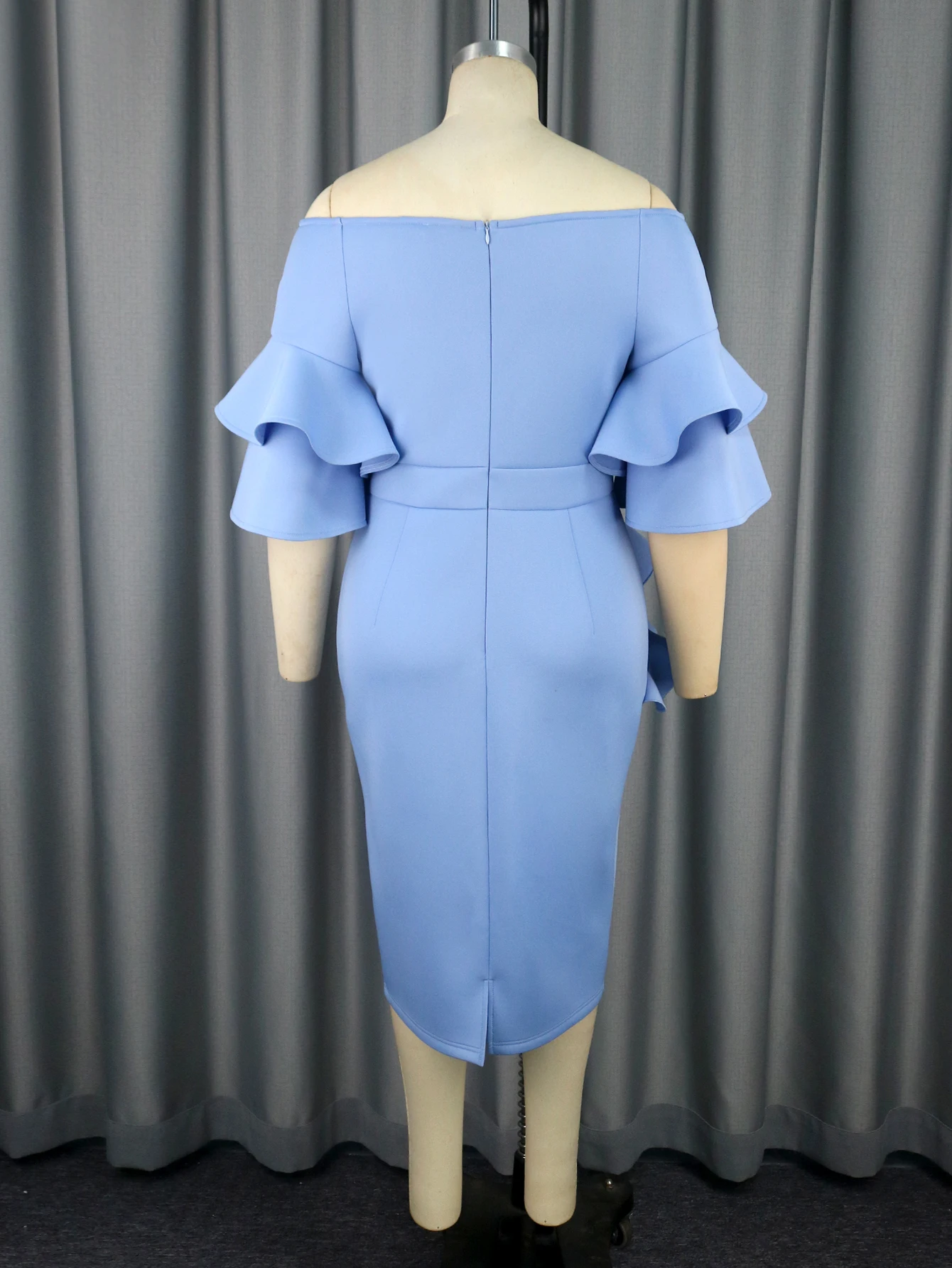 Fleepmart Women Party Dress Birthday Bodycon Elegant Blue Ruffle Sleeves Bow O Neck Slim Celebrate Cocktail Event Cute Plus Size 4XL