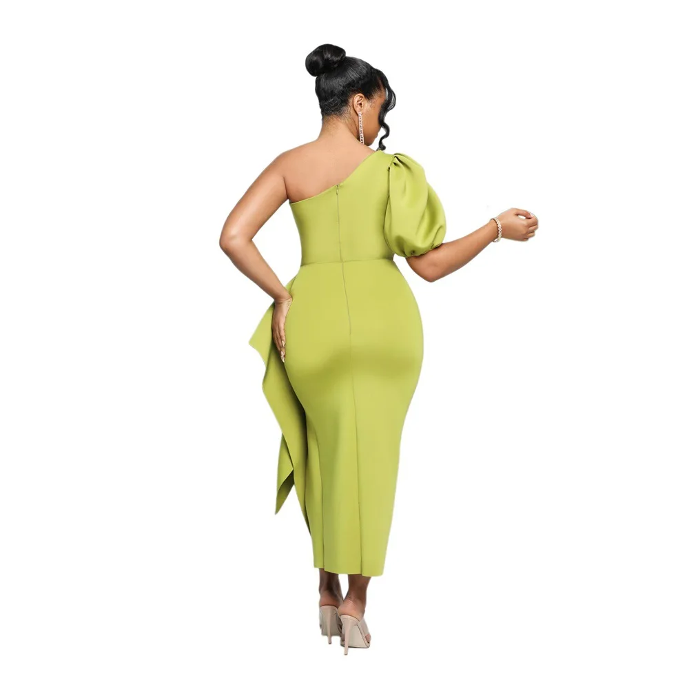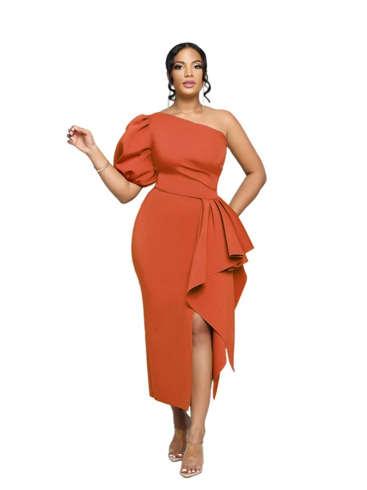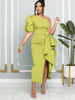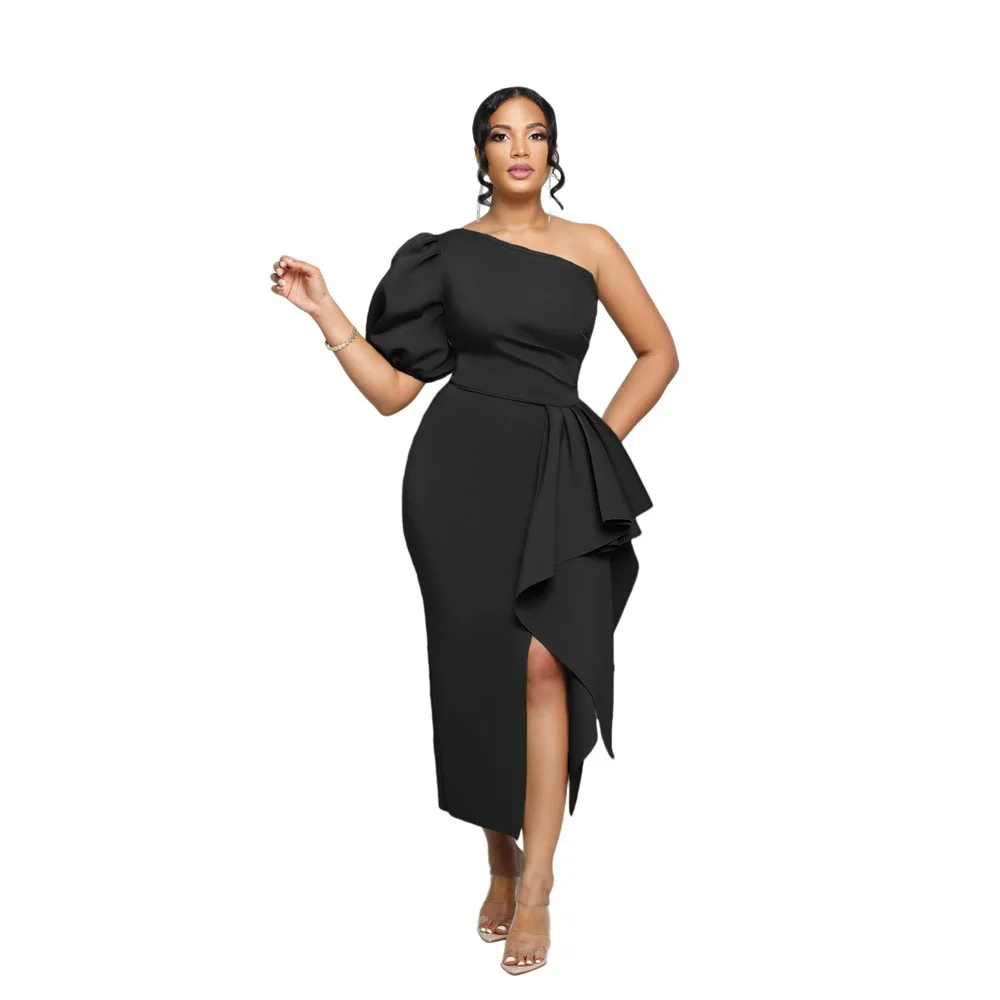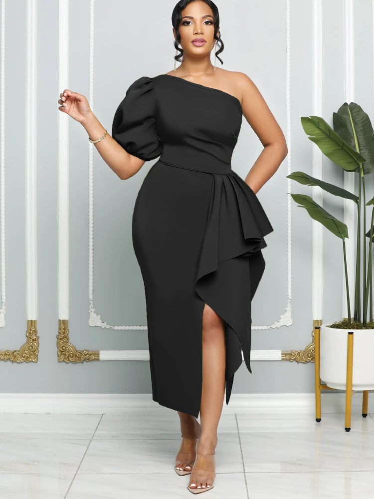 Fleepmart Women Party Dress One Shoulder High Waist Ruffles Slit Sexy Evening Celebrate Occasion Prom Birthday Christmas African Gowns New