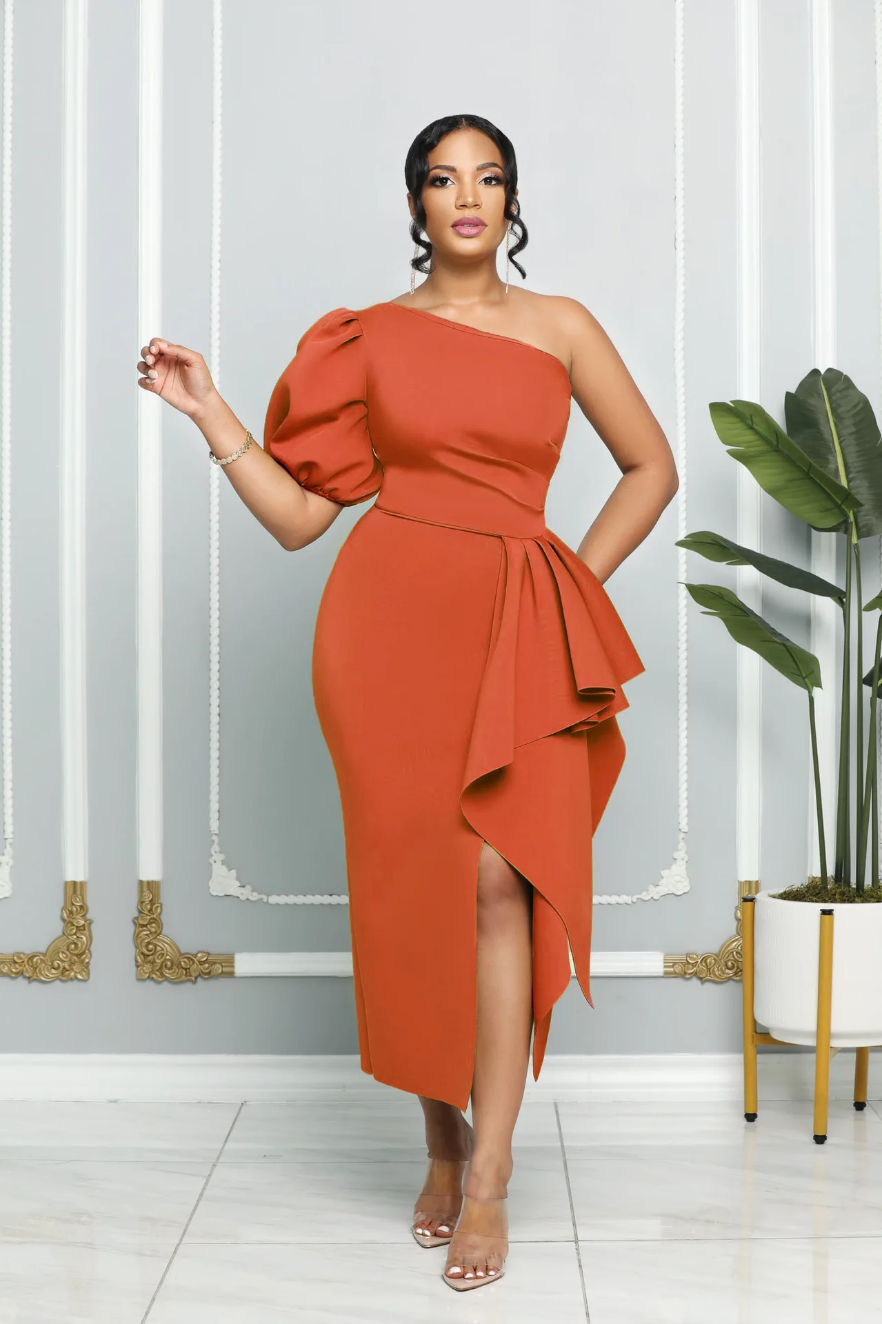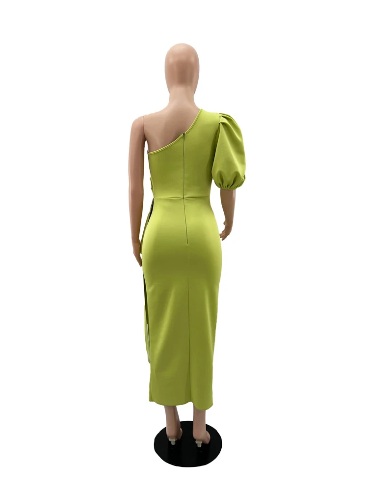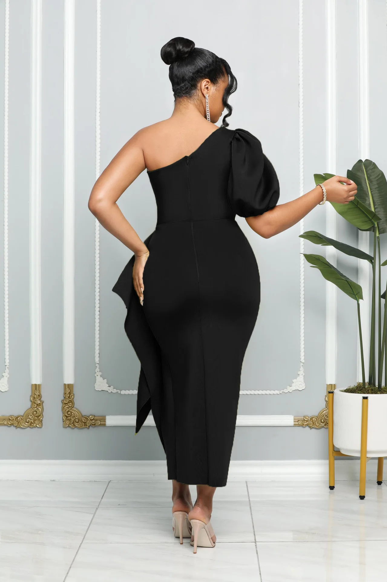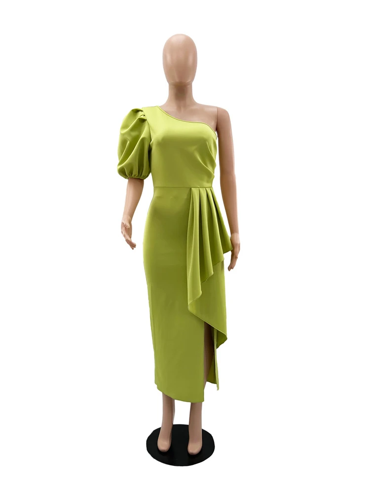 Fleepmart Women Party Dress One Shoulder High Waist Ruffles Slit Sexy Evening Celebrate Occasion Prom Birthday Christmas African Gowns New