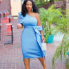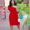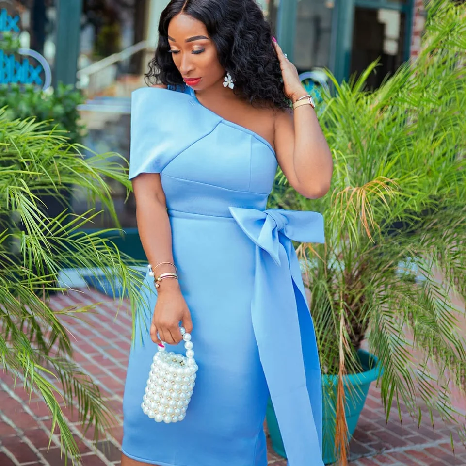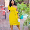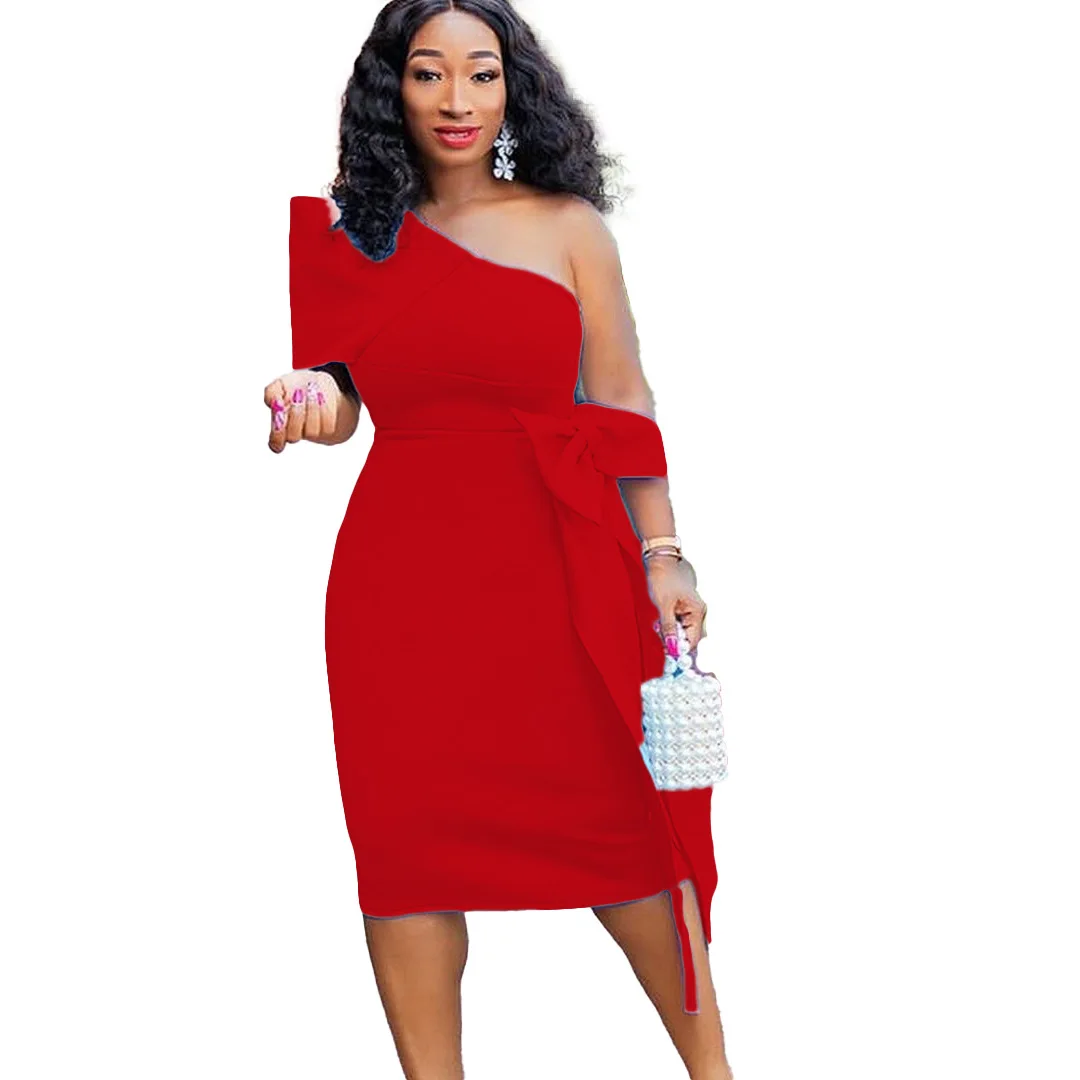 Fleepmart Women Party Dress One Shoulder with Bowtie Bodycon Celebrate Event Christmas African Fashion Female Evening Night Out Robes New