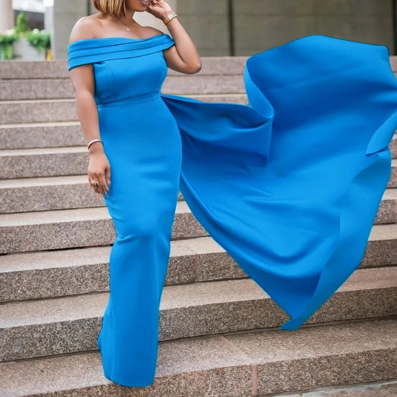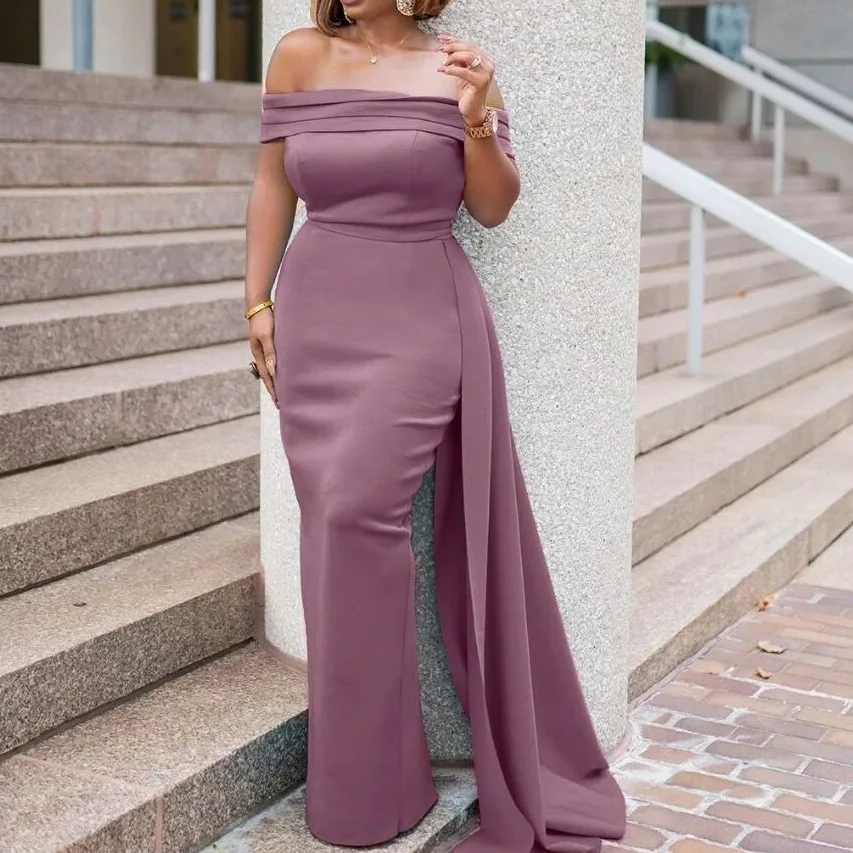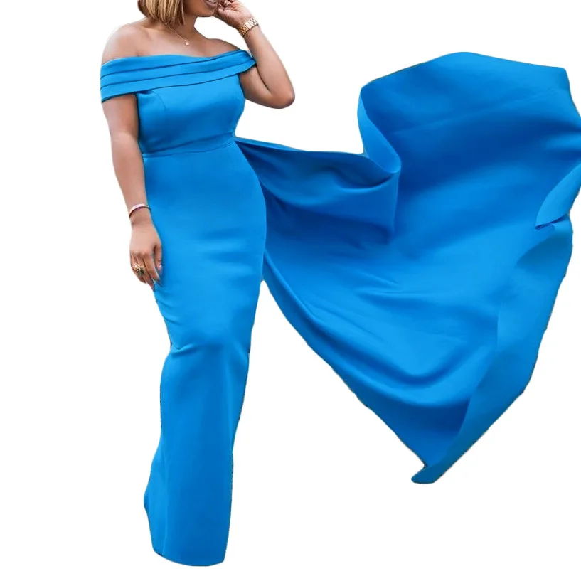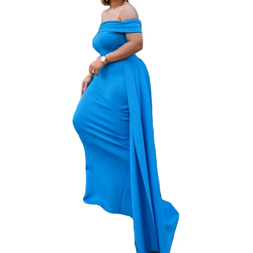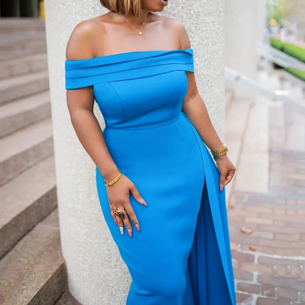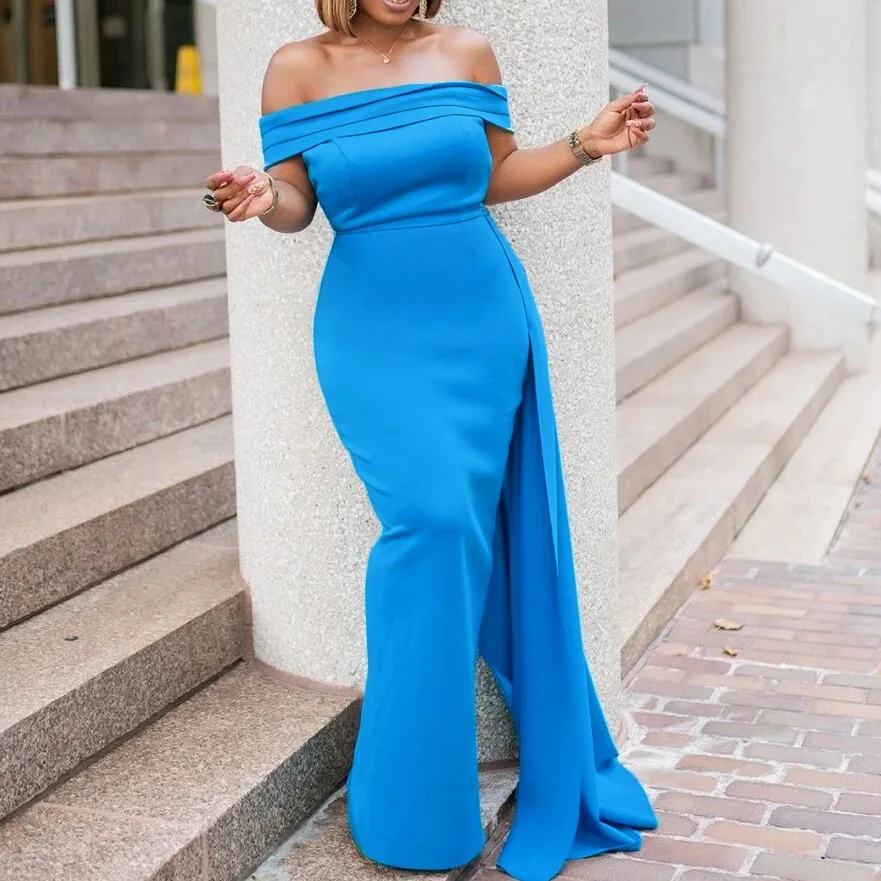 Fleepmart Women Party Long Dress Off Shoulder Backless Celebrate Occasion Blue Red Female High Waist Package Hip Prom Christmas Robes 2022