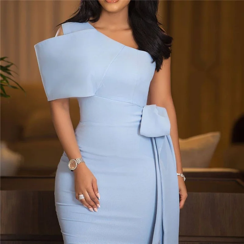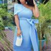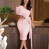Fleepmart Women Pink Dress One Shoulder with Bowtie Waist Belt Party Chrismas Elegant Slim Birthday African Event Celebrate Occasion New