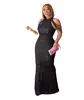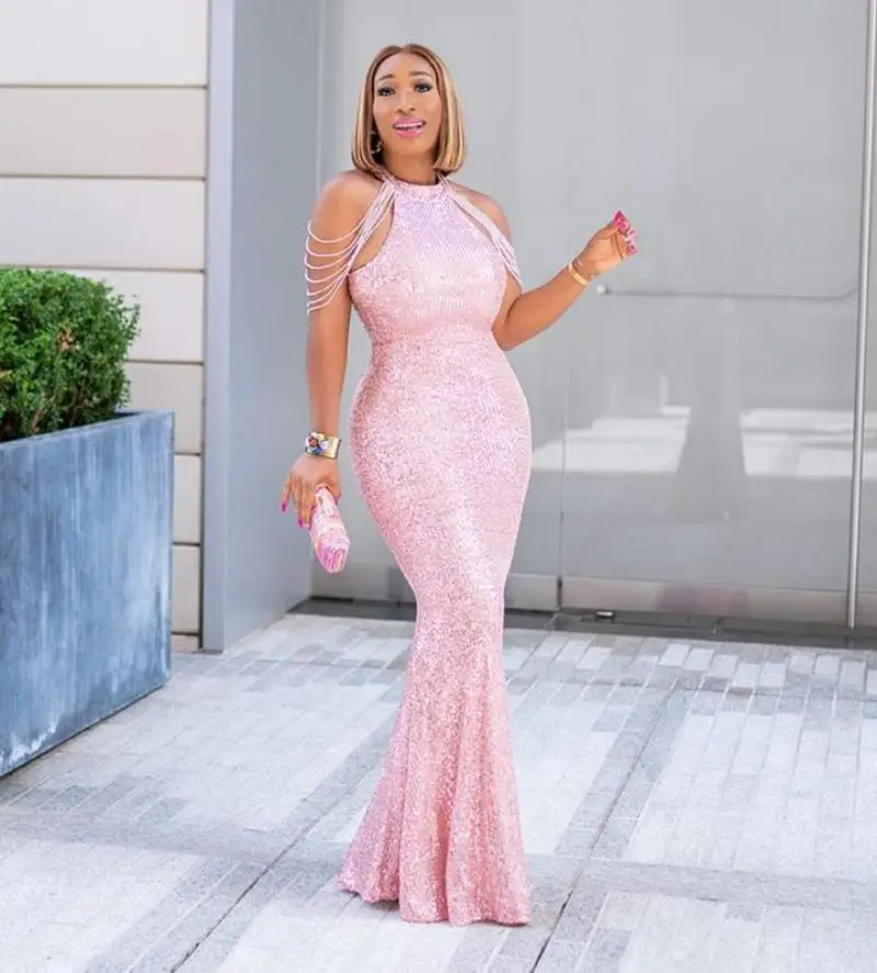 Fleepmart Women Pink Shiny Maxi Dress Sequin Long Party Halter Glitter Dance Evening African Female Gowns Celebrate Occasion Wedding Guest