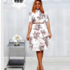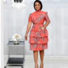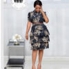 Fleepmart Women Printed Cake Dress Short Sleeves with Bowtie Ruffle Elegant Office Ladies African Female Knee Length Modest Robes Vestidos