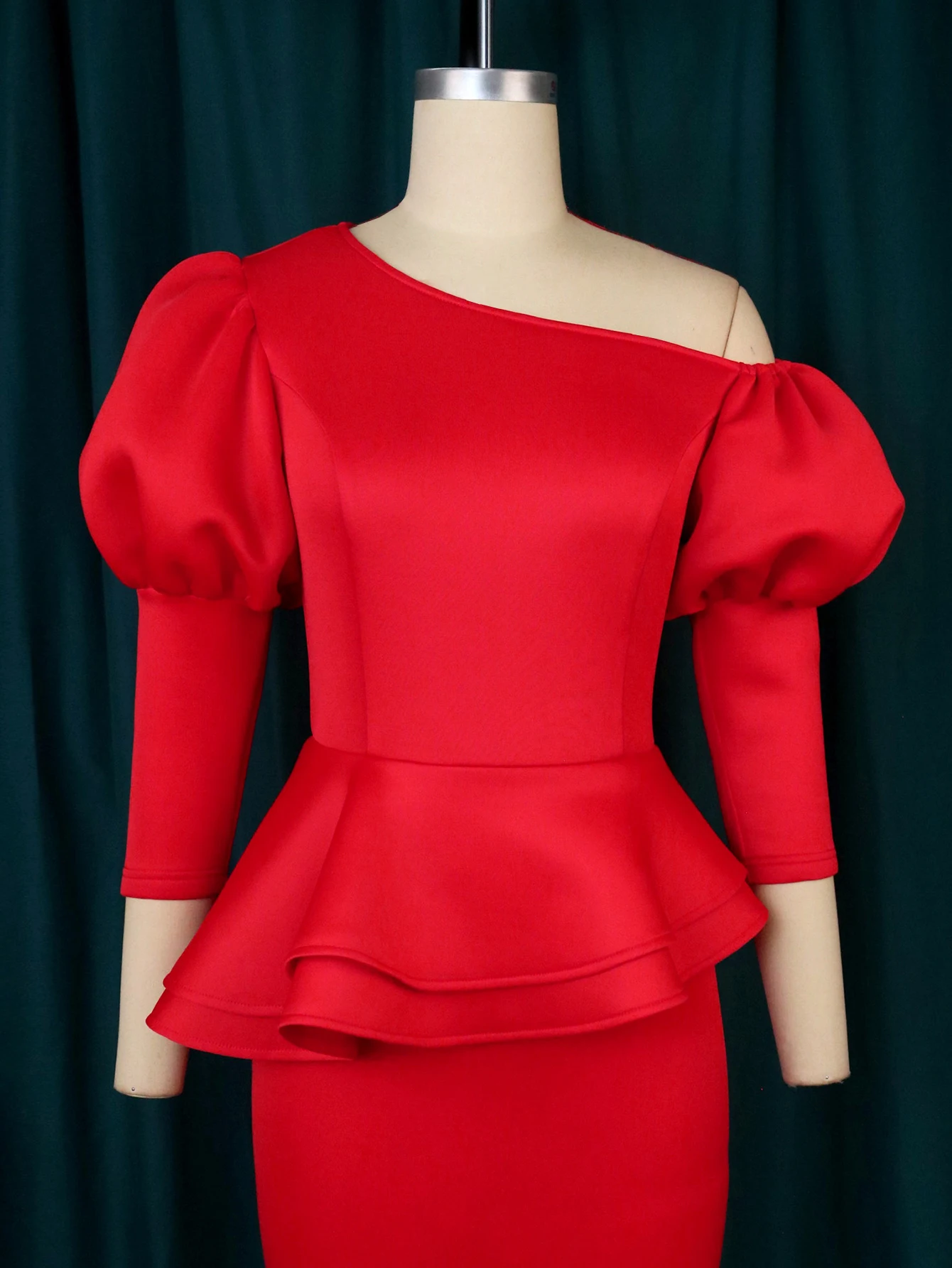 Fleepmart Women Red Dress Peplum Bodycon Christmas Party Sheath Off Shoulder Female African Ladies Dance Event Celebrate Gowns Evening New