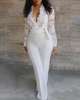 Fleepmart Women Sexy Elegant Overalls Rompers Patchwork Jumpsuit Female Long Sleeve Lace Overall Trousers Party Playsuit
