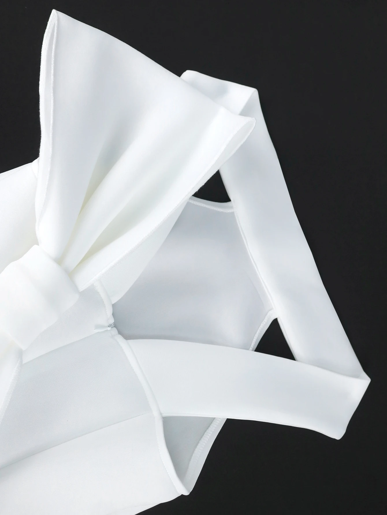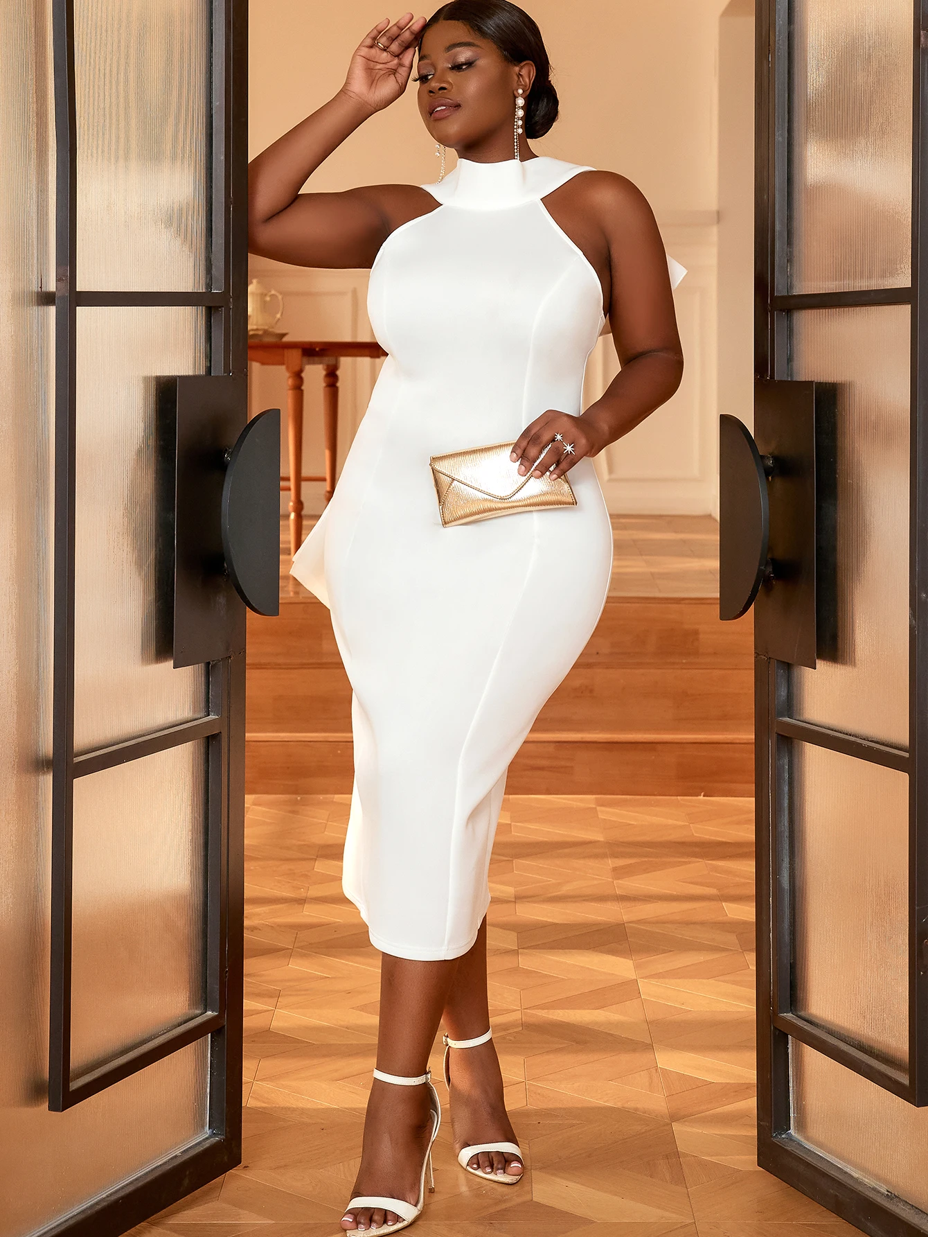 Fleepmart Women Sexy White Dress Plus Size Summer Fashion Wedding Bridesmaid Sleeveless Back Bow Bodycon Club Party Event Celebrate Gowns