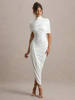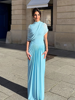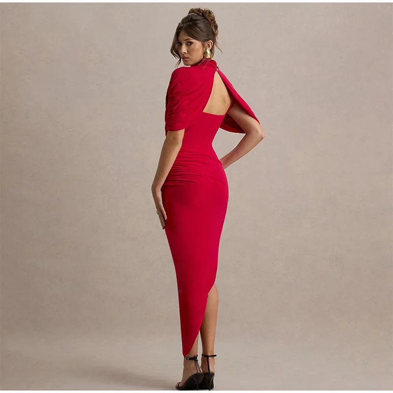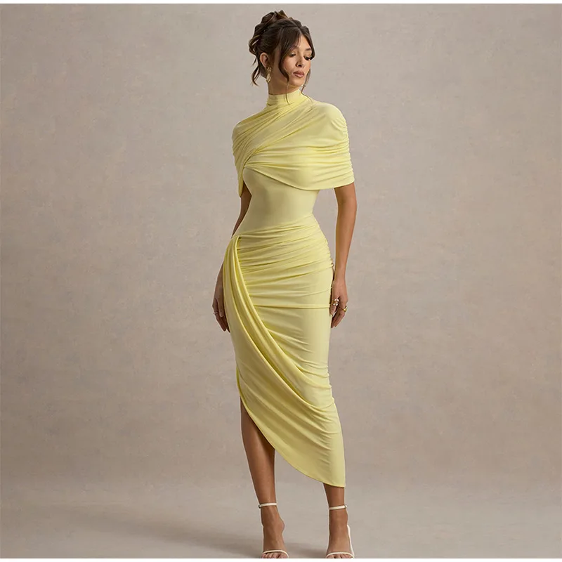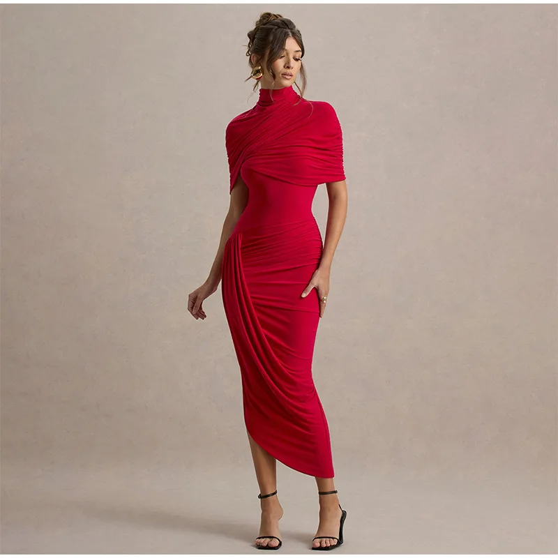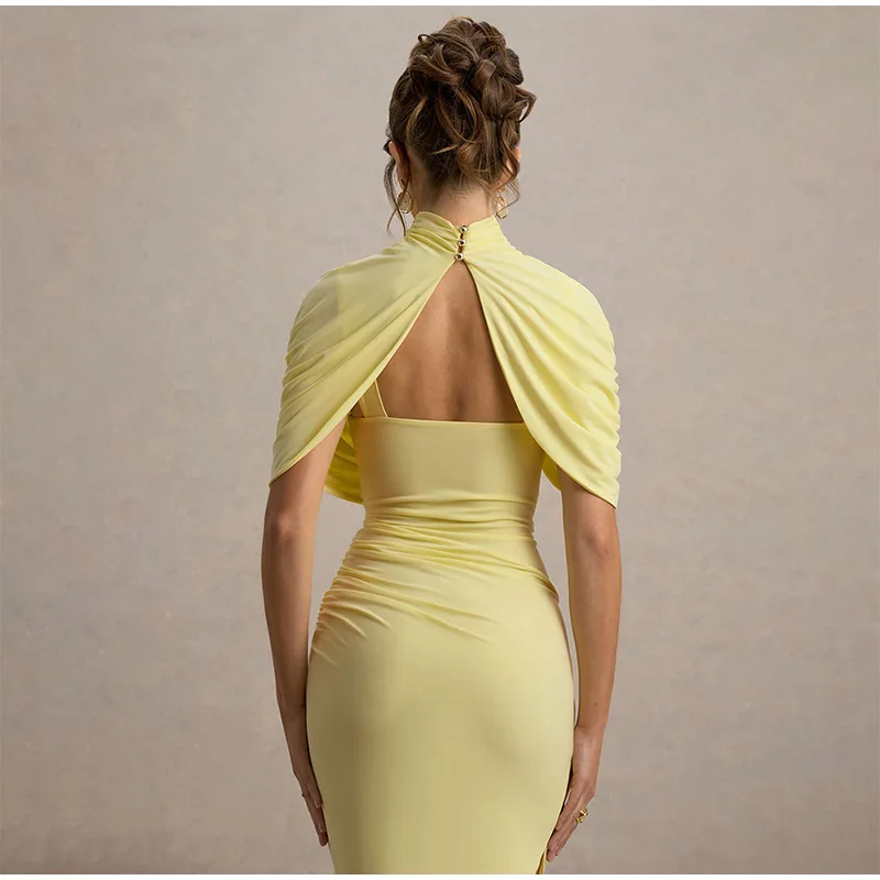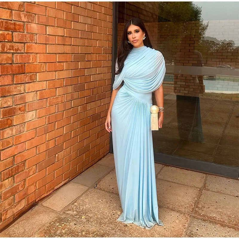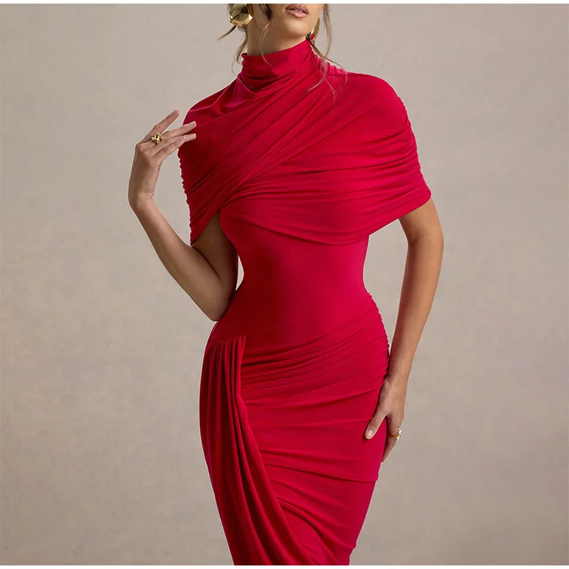 Fleepmart Women Solid High Neck Pleated Maxi Dress Slim Fit Waist Cinching Backless Long Dress Lady Summer Elegant Party Vestidos 2025