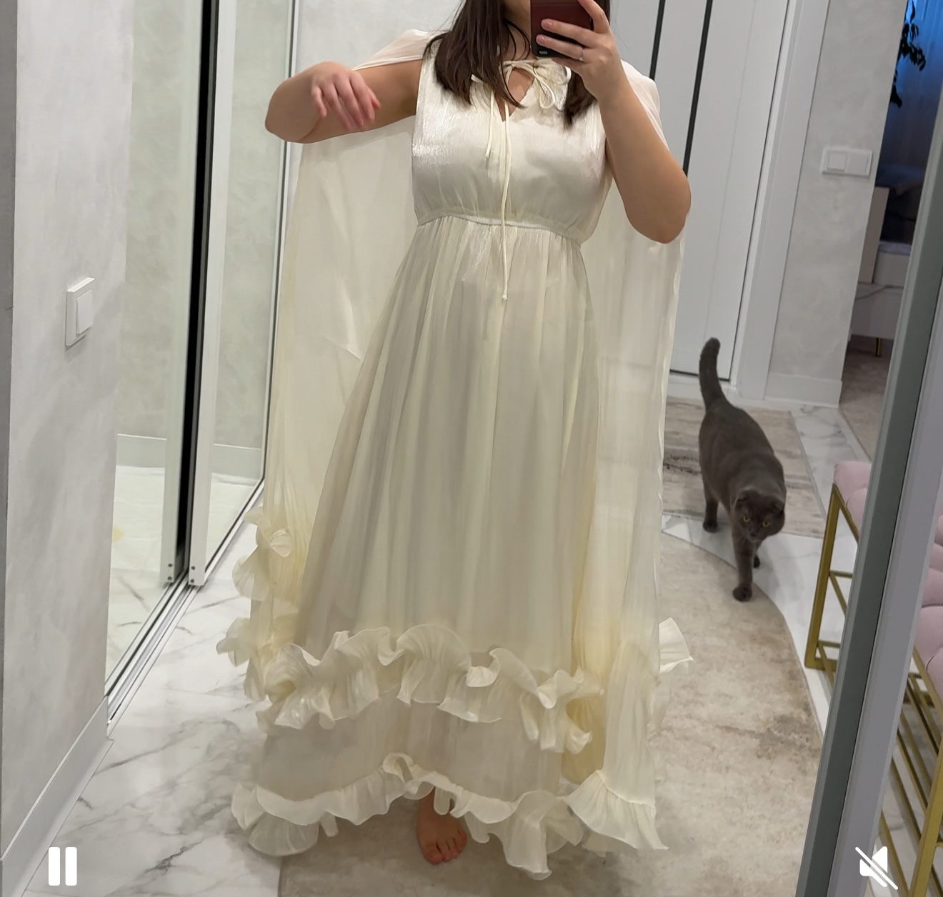 The material of the dress is soft and skin-friendly, and the ruffled design is so beautiful.