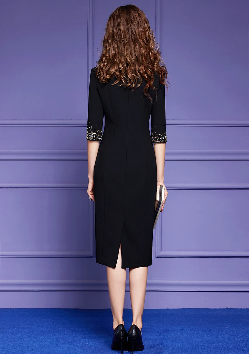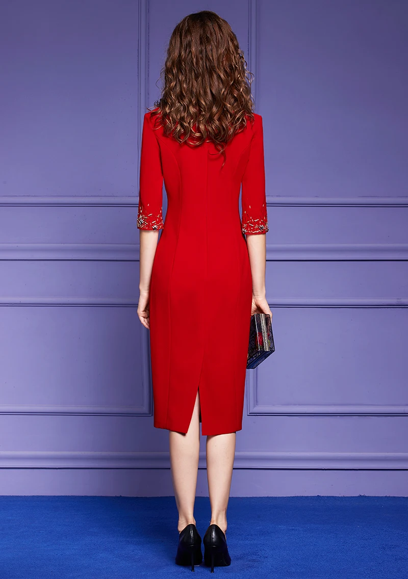 Fleepmart Women Spring Luxury Beading Dress Festa High Quality Cocktail Party Robe Femme Vintage Designer Pencil Vestidos M-5XL
