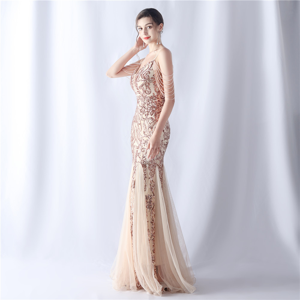 Fleepmart Women Strap Beading Party Maxi Dress Sexy Sequin Evening Dress Long Prom Dress