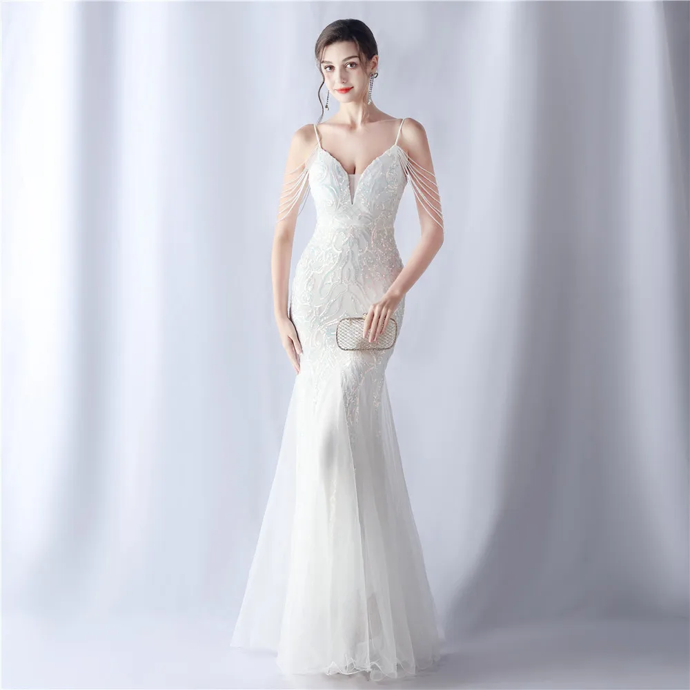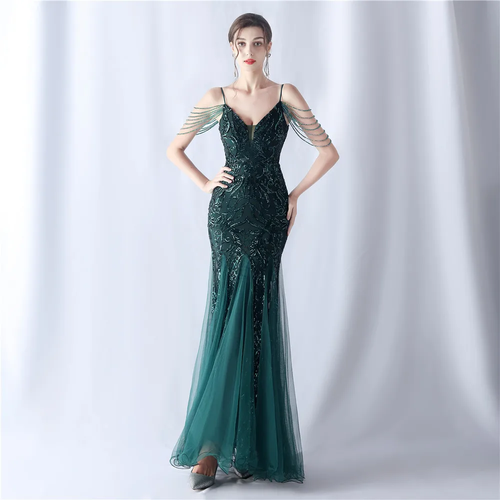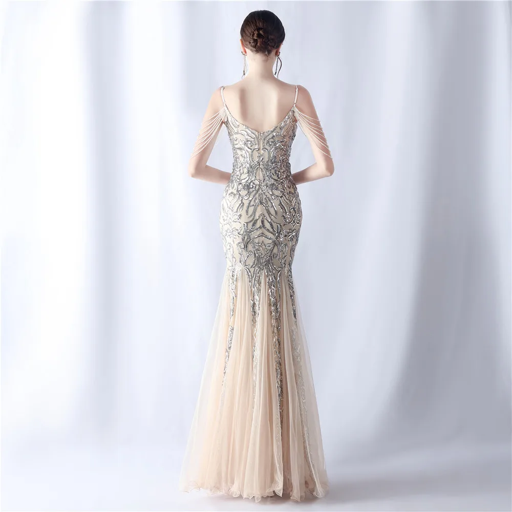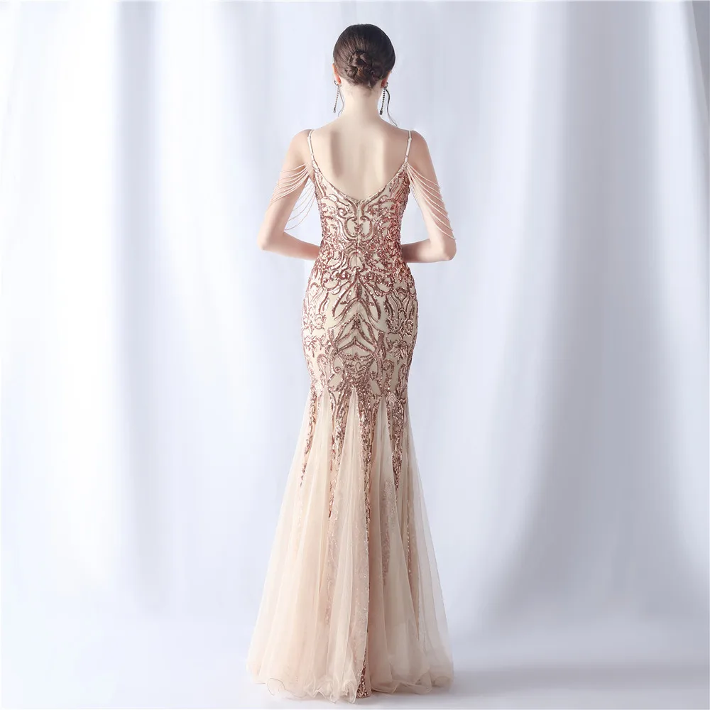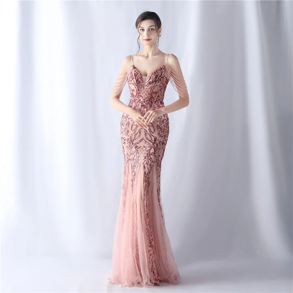 Fleepmart Women Strap Beading Party Maxi Dress Sexy Sequin Evening Dress Long Prom Dress There are no reviews yet