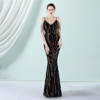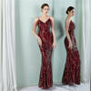 Fleepmart Women Strap Dress V Neck Gold Sequin Evening Dress Sexy Beading Party Maxi Dress Long Prom Dress