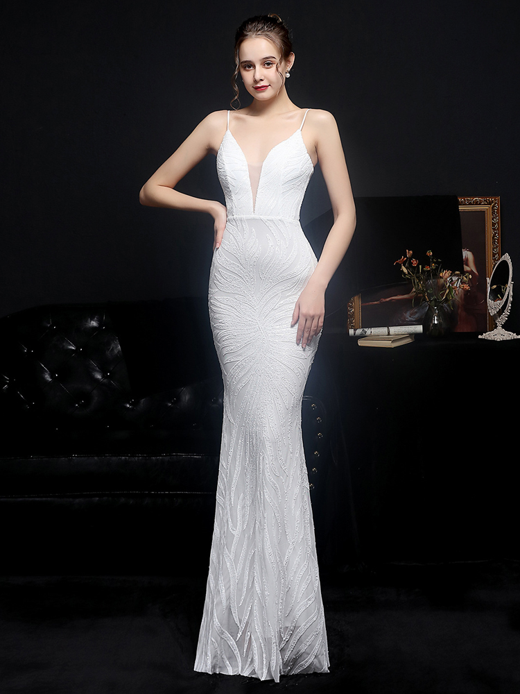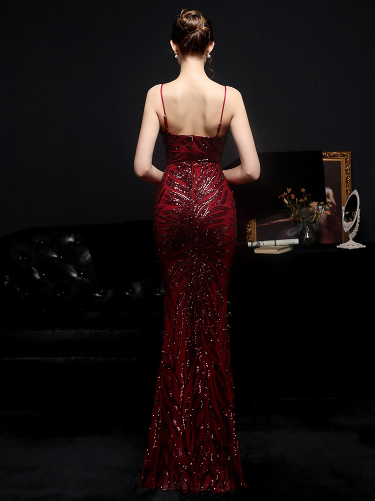 Fleepmart Women Strap Maxi Party Gown Sexy V Neck Sequin Prom Dress