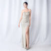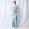 Fleepmart Women Strap Party Maxi Dress Sexy Blue Sequin Evening Dress Long Prom Dress