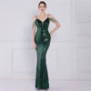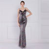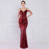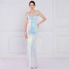 Fleepmart Women Strap Party Maxi Dress Sexy V Neck Beading Evening Dress Celebrity Silver Sequin Dress Long Prom Dress