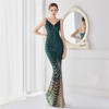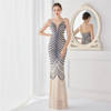Fleepmart Women Strap Party Maxi Dress Sexy V Neck Evening Dress Silver Sequin Dress Long Prom Dress