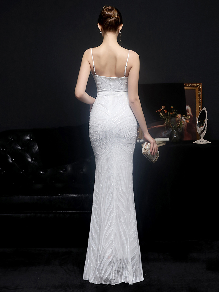 Fleepmart Women Strap Party Maxi Dress Sexy V Neck Evening Dress White Sequin Dress Long Prom Dress