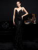 Fleepmart Women Strap Party Maxi Dress Sexy V Neck Evening Dress White Sequin Dress Long Prom Dress