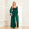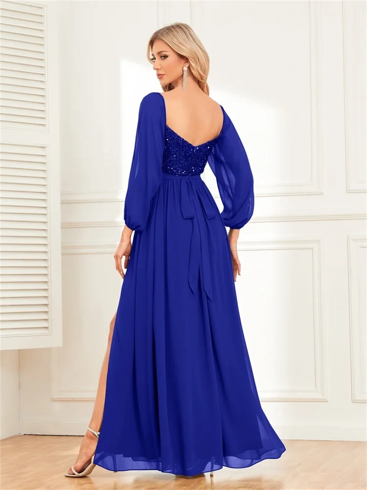 Fleepmart Women Strapless Dark Green Long Sleeved Evening Dresses Sequin Chiffon Free Wear Square Neck Party Gown Elegant Formal Dress