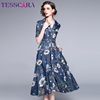 Fleepmart Women Summer Elegant Denim Dress Shirt High Quality Long Floral Party Robe Femme Vintage Designer A-Line Vestidos