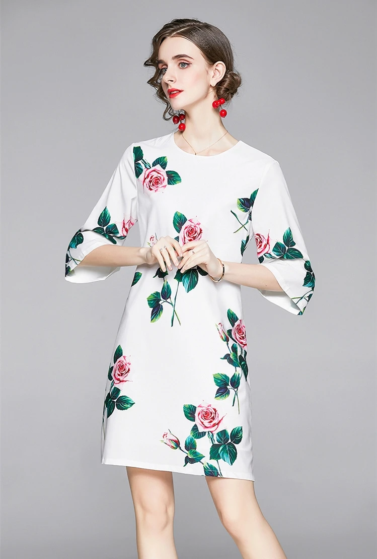 Fleepmart Women Summer Elegant Floral Dress Festa High Quality Cocktail Party Robe Femme Vintage Designer White Casual VestidosThere are no reviews yet