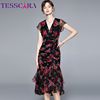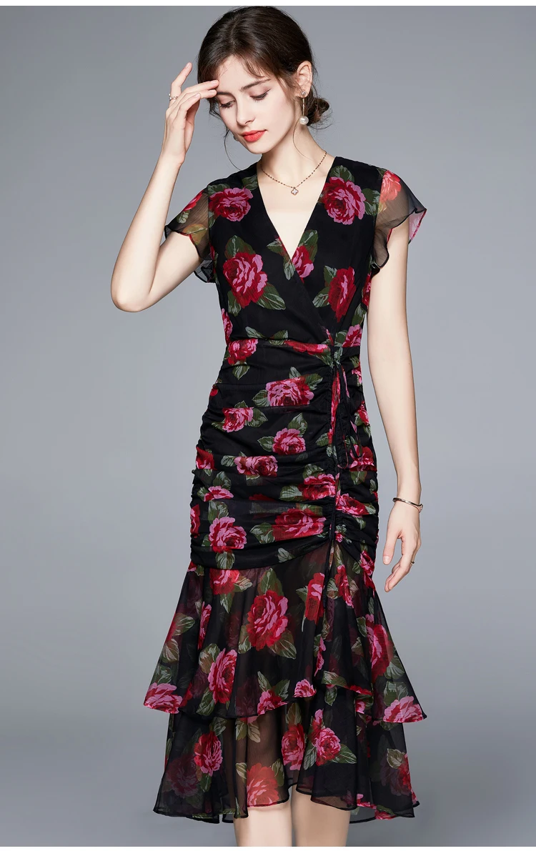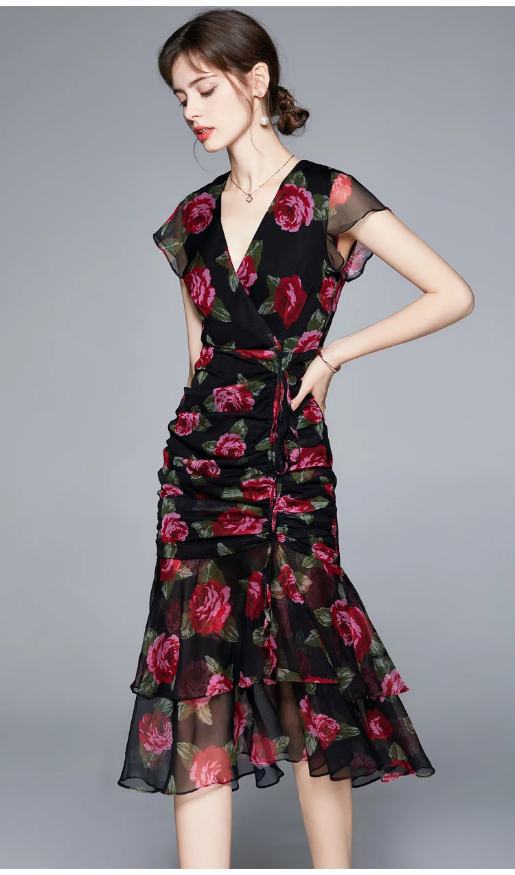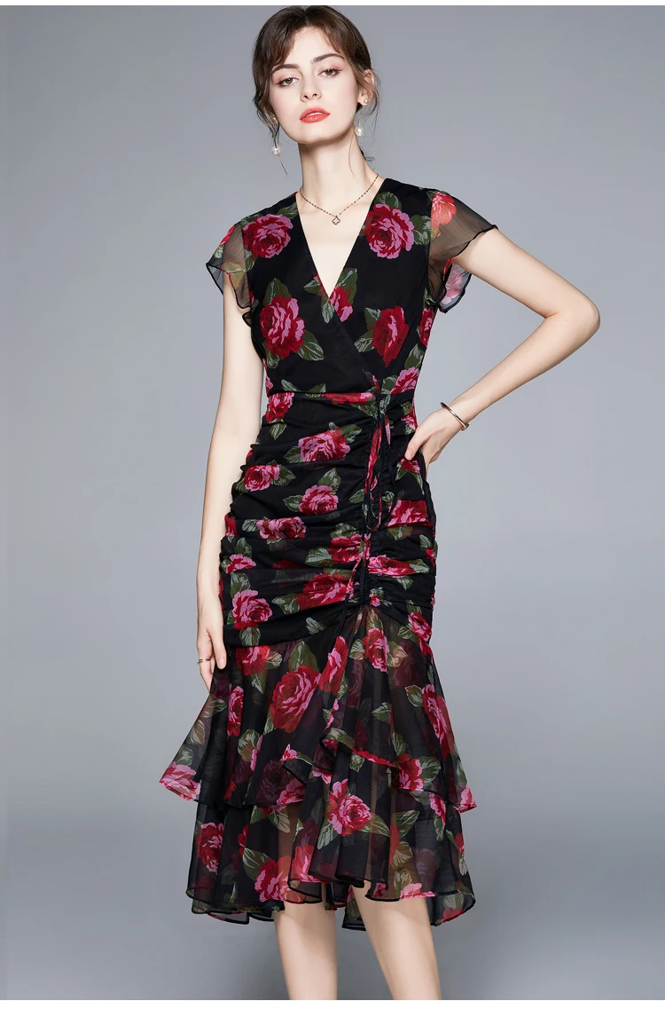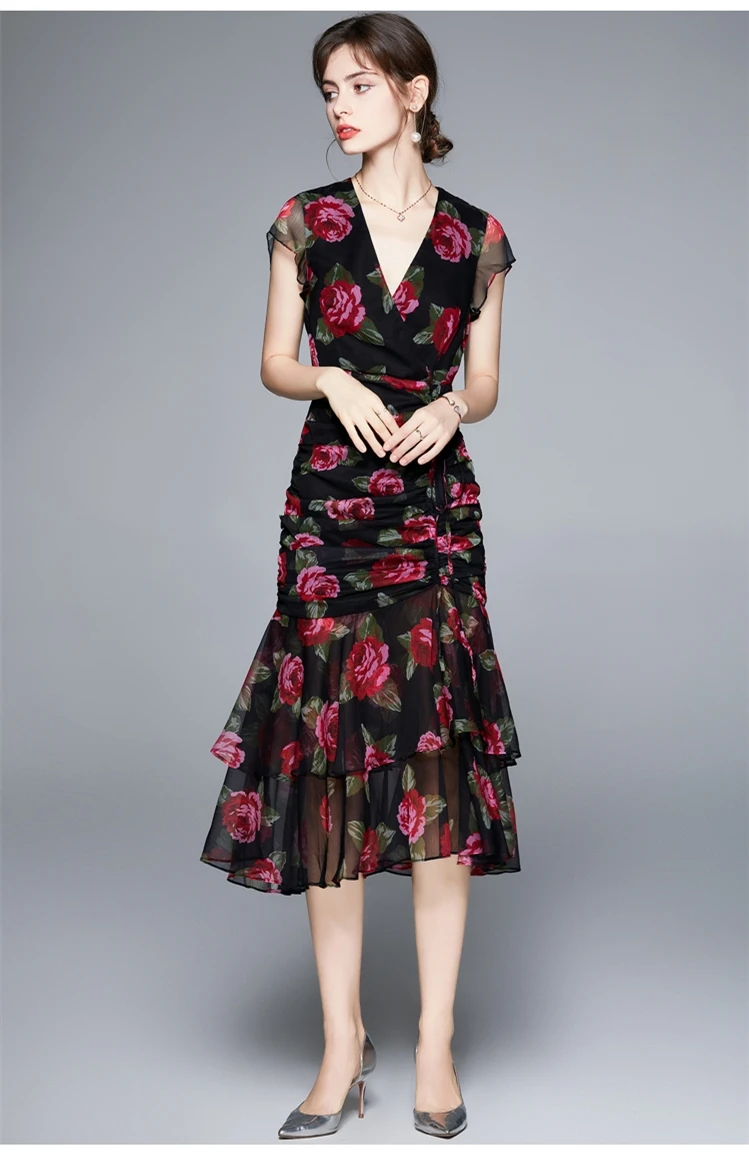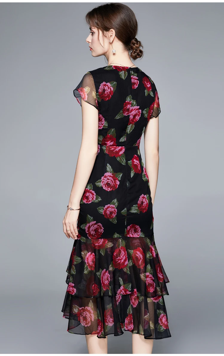 Fleepmart Women Summer Elegant Floral Dress Festa High Quality Long Cocktail Party Robe Femme Vintage Designer Trumpet Vestidos