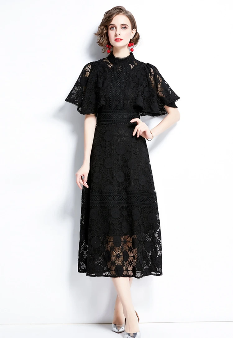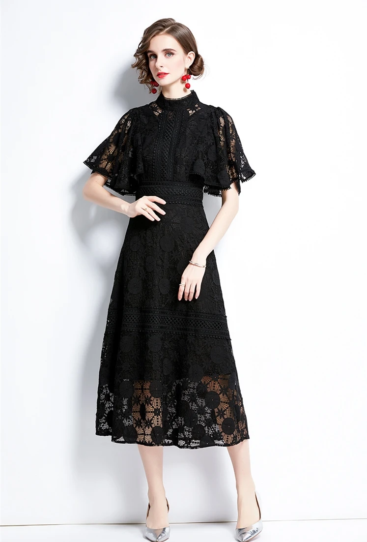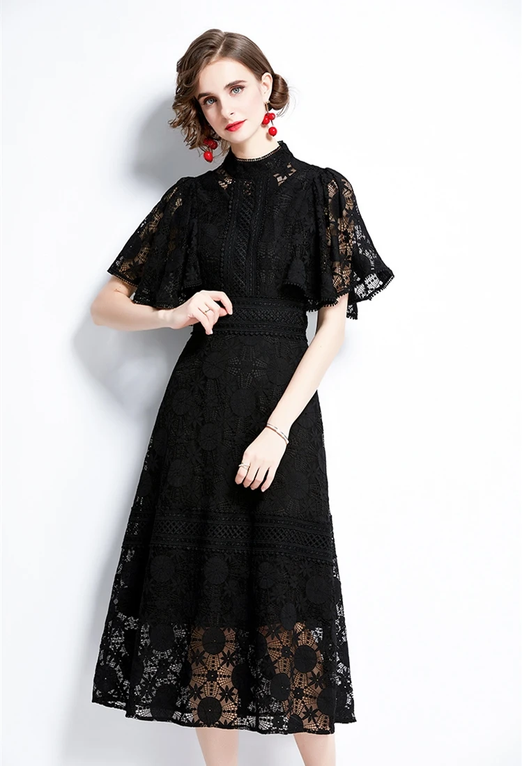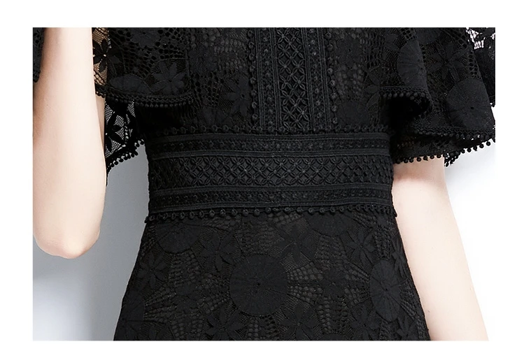 Fleepmart Women Summer Elegant Lace Dress Festa High Quality Long Office Party Robe Femme Runway Vintage Designer Black Vestidos