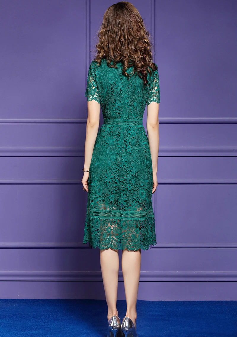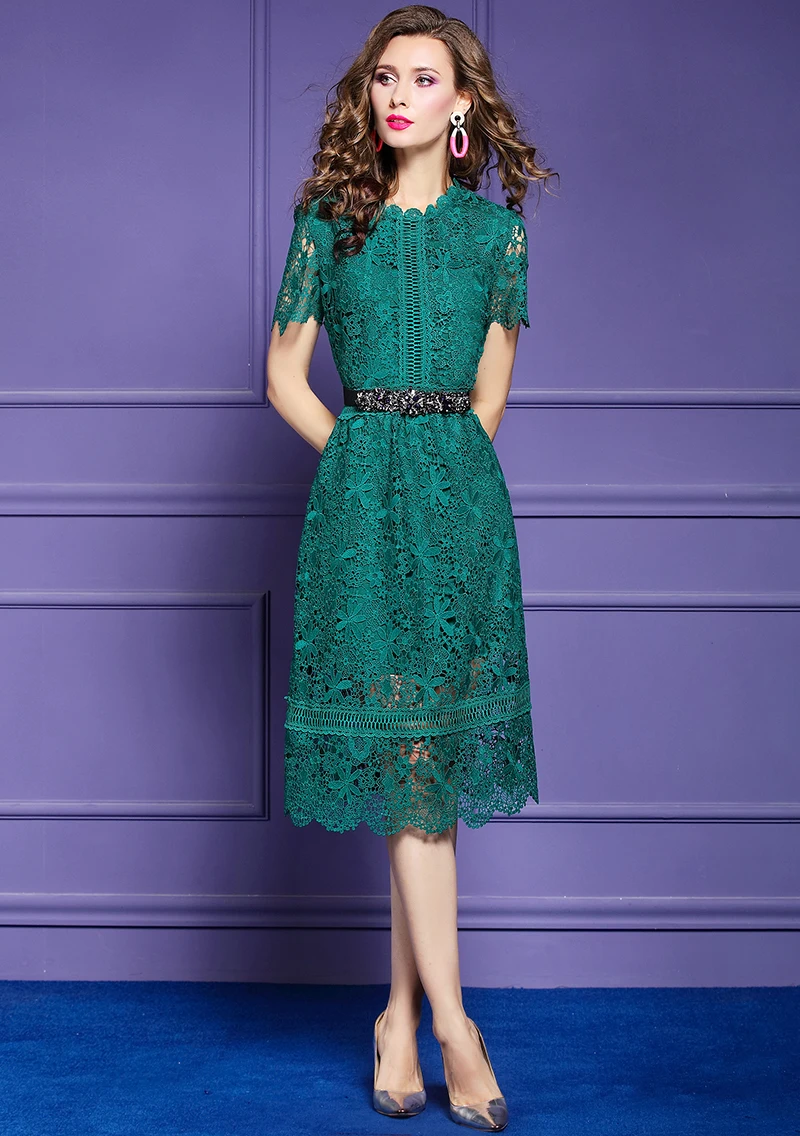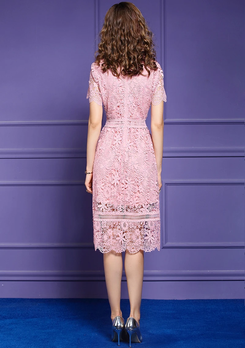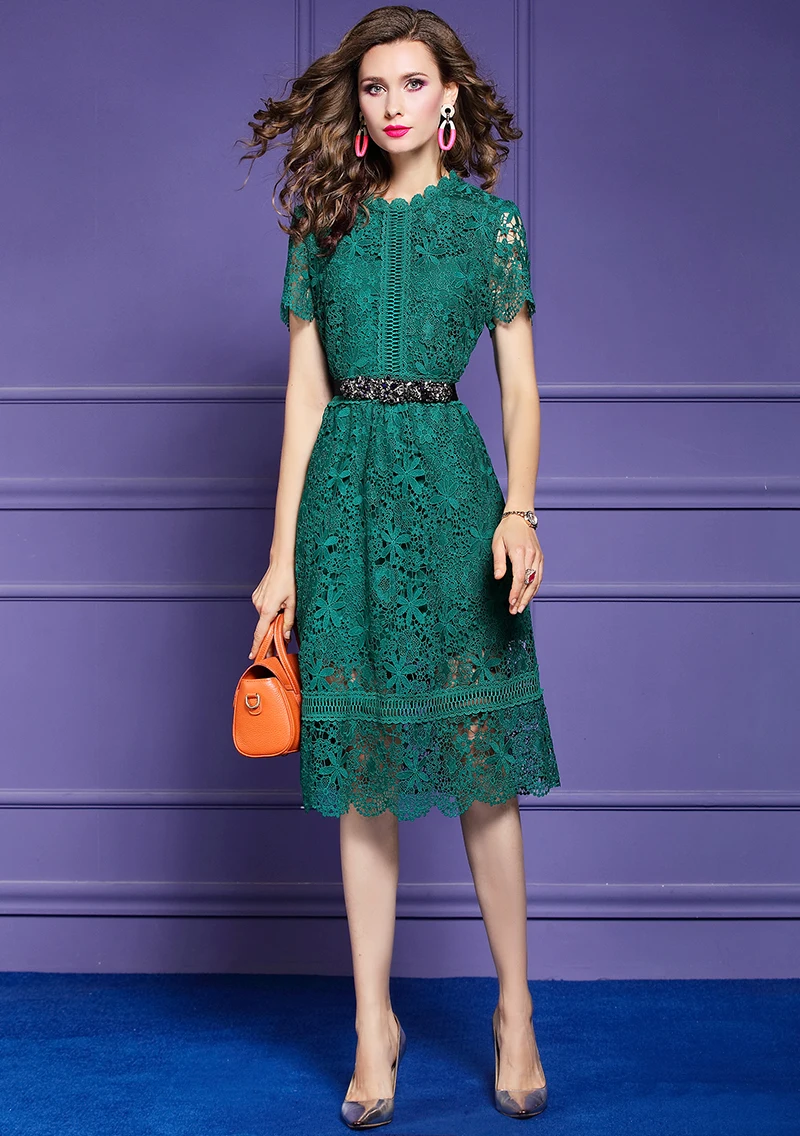 Fleepmart Women Summer Elegant Lace Dress Festa High Quality Wedding Cocktail Party Robe Femme Designer Pink & Green Vestidos