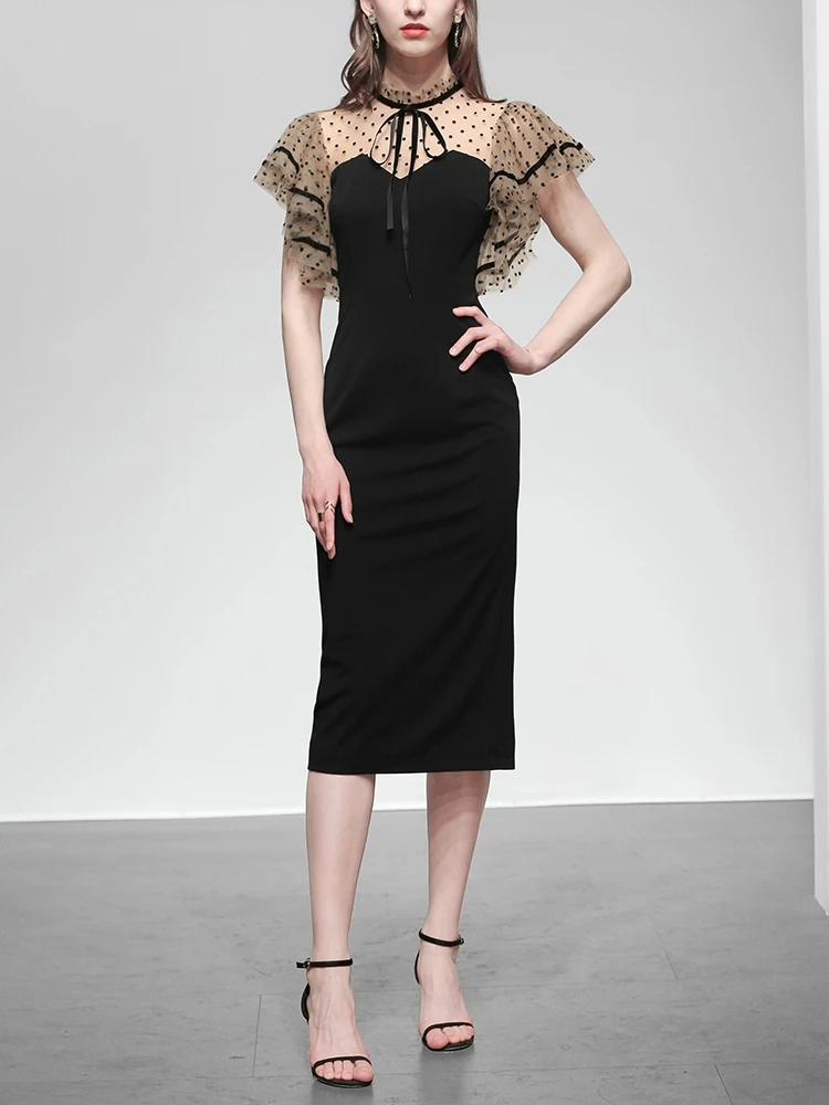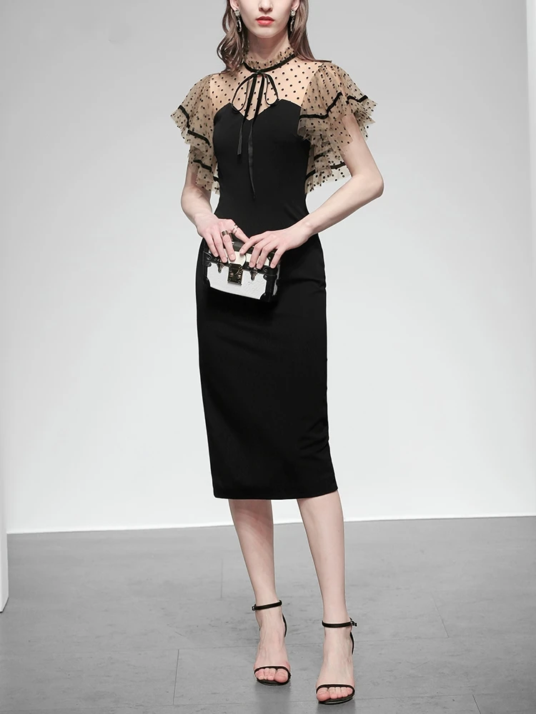 Fleepmart Women Summer Elegant Pencil Dress Festa High Quality Vintage Office Cocktail Party Robe Femme Mesh Designer Vestidos