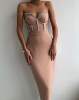 Fleepmart Women Summer Sexy Strapless Backless Beading Midi Black Beige Red Crystal Bandage Dress 2021 Elegant Evening Party Dress Vestido