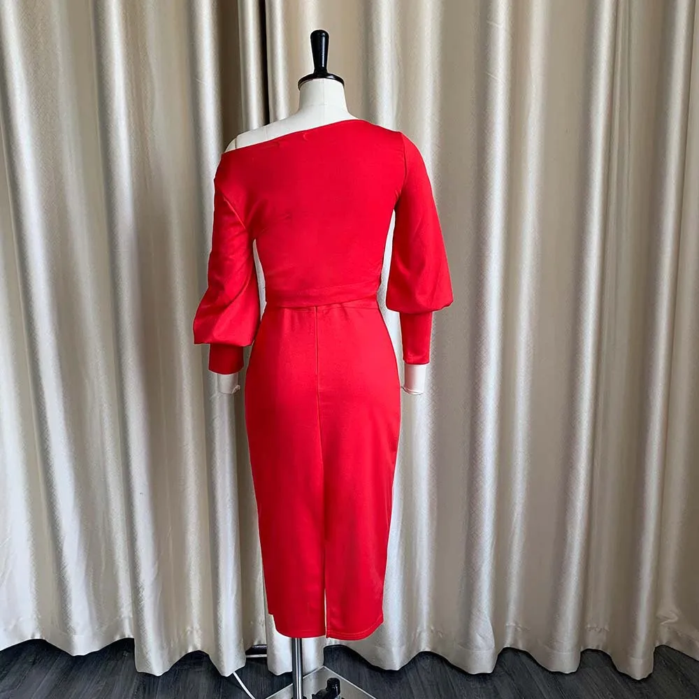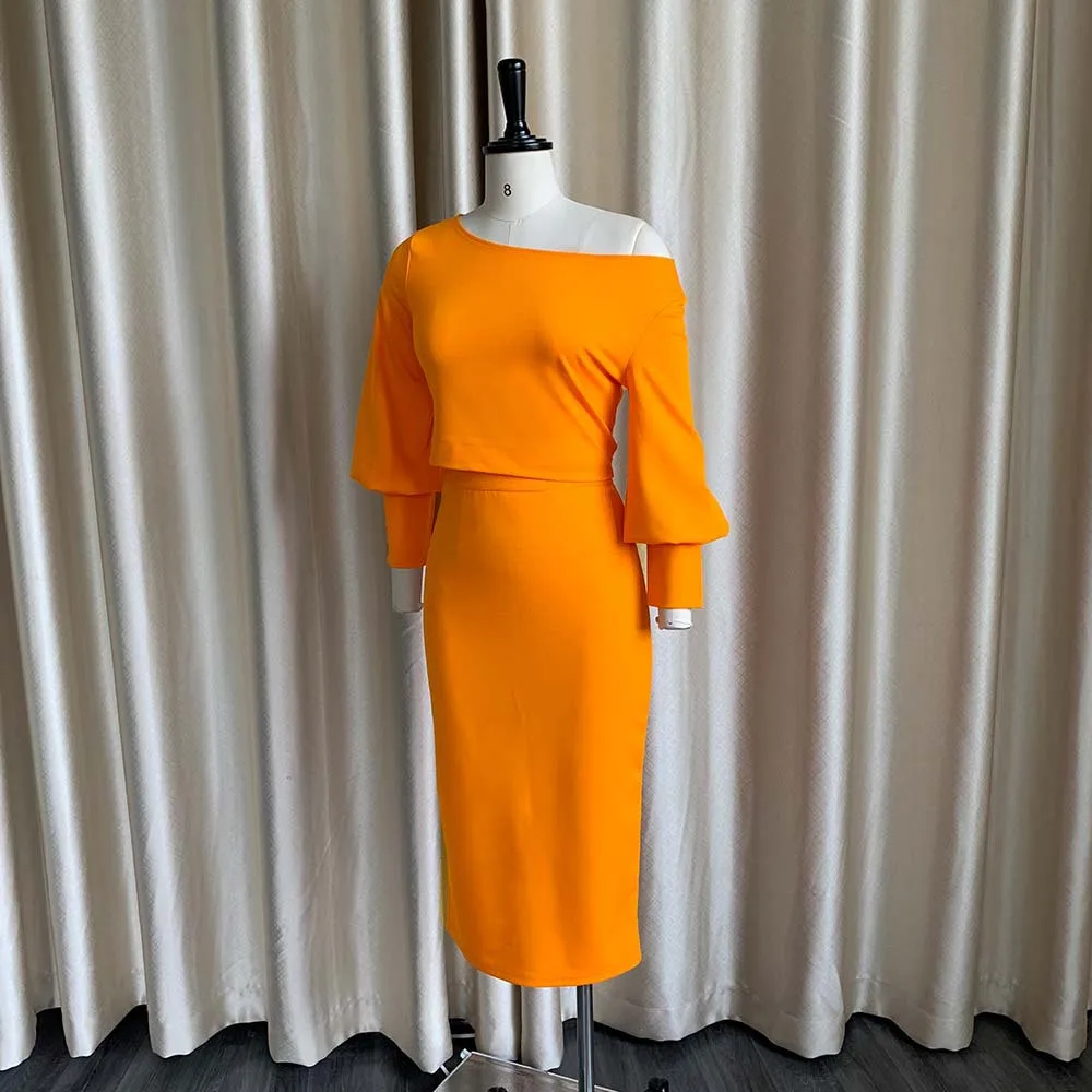 Fleepmart Women Two Pieces Set Crop Tops Off Shoulder Long Lantern Sleeves High Waist Skirt Package Hip Female Spring Summer Suit Arican