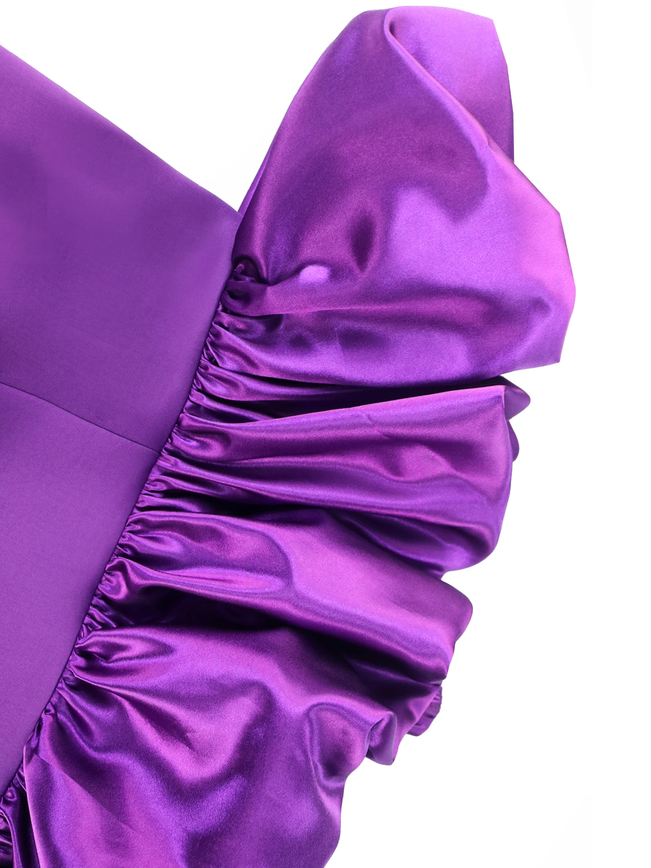 Fleepmart Women Two Pieces Set Purple Sexy Strapless Tube Tops Peplum Ruffles Wide Leg Pants Shiny Party Birthday Event Suit Summer New