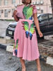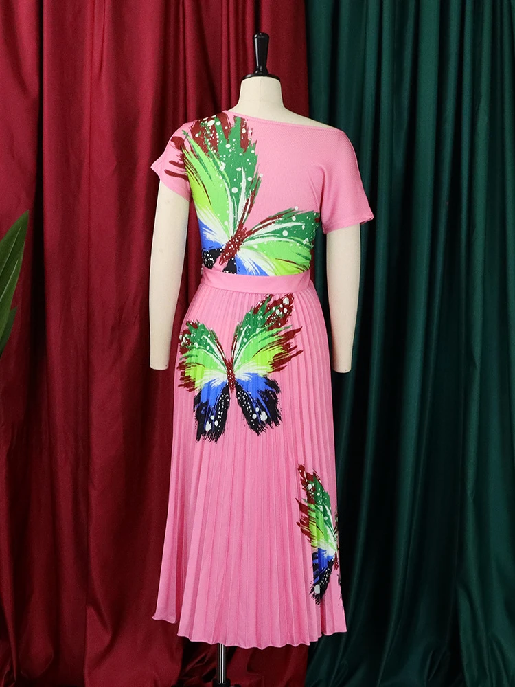 Fleepmart Women Two Pieces Set Short Sleeves High Waist Pleated Midi Skirt Printed African Elegant Ladies Female Suits Modest Large Size