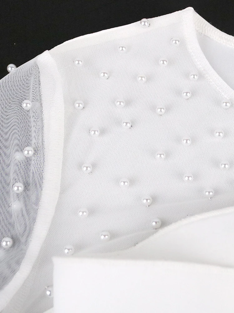 Fleepmart Women White Party Dress Sexy Long Sleeve O Neck Beading Mesh Patchwork Peplum Elegant Event Evening Birthday African Gowns